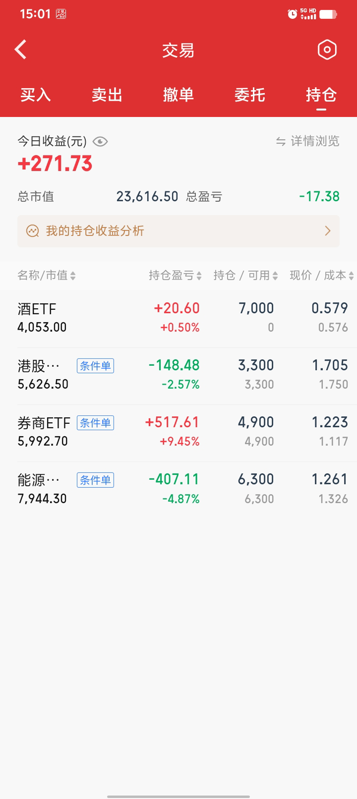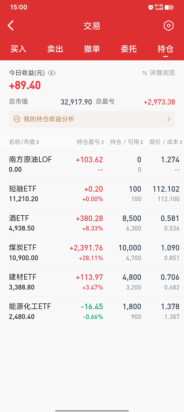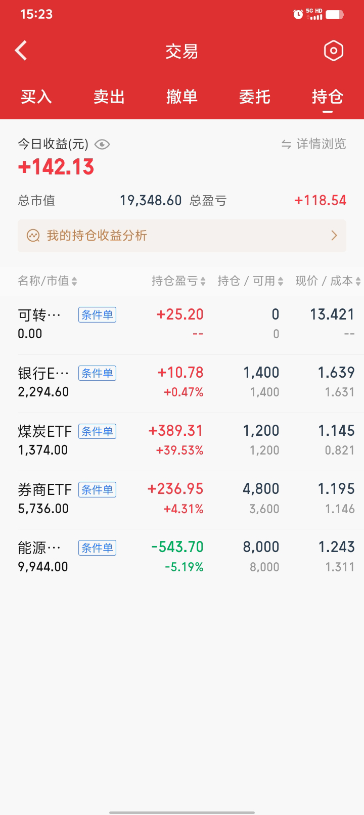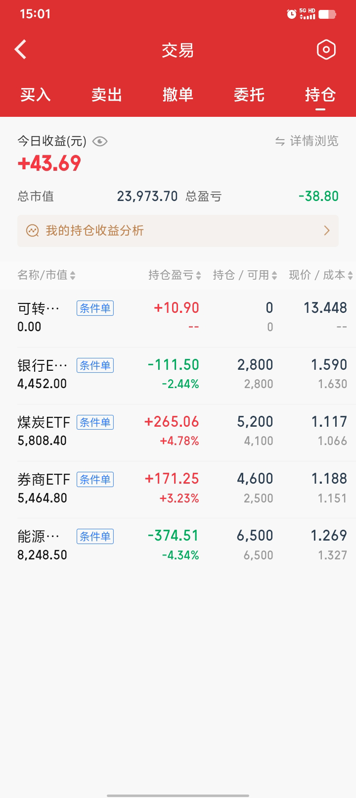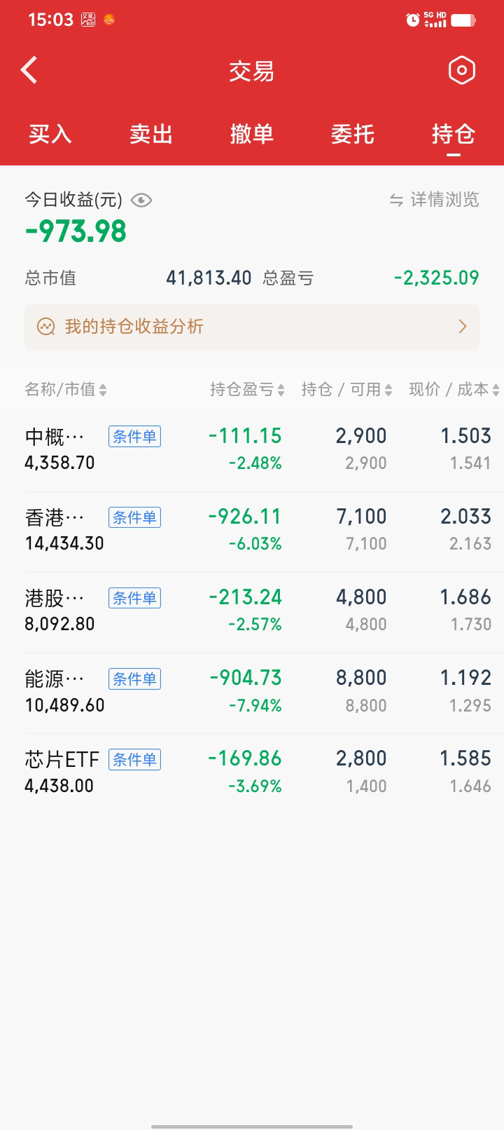 继续网格,清建材e,还剩两个品种了,后面改回网格交易条件单,不用手工了,华泰打电话说我的交易模式让他们亏本了,偷笑。网格间距大点好了。