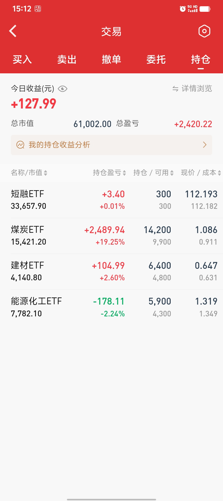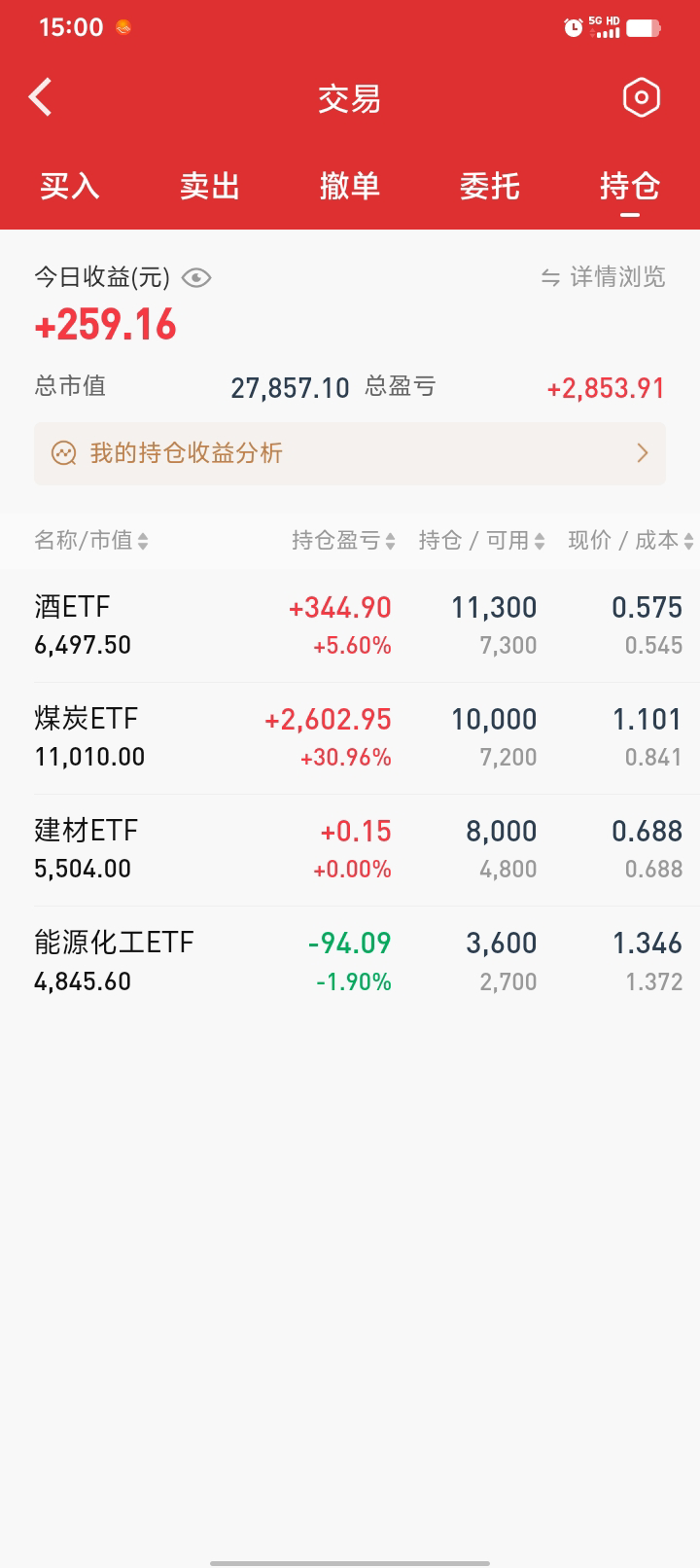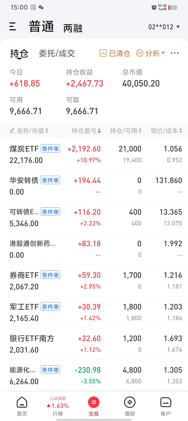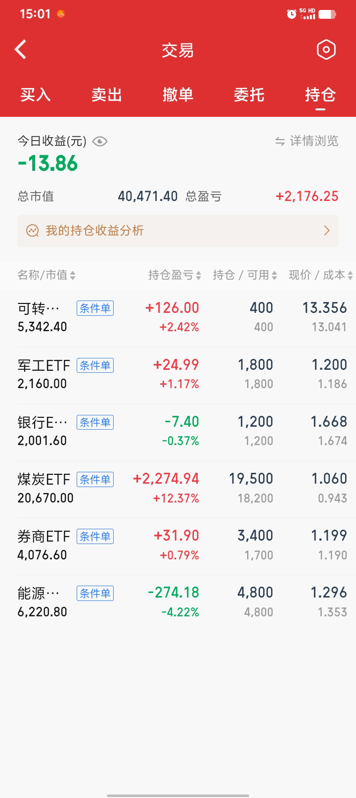 继续网格,清煤炭e,加华安转。期末正2.15万。