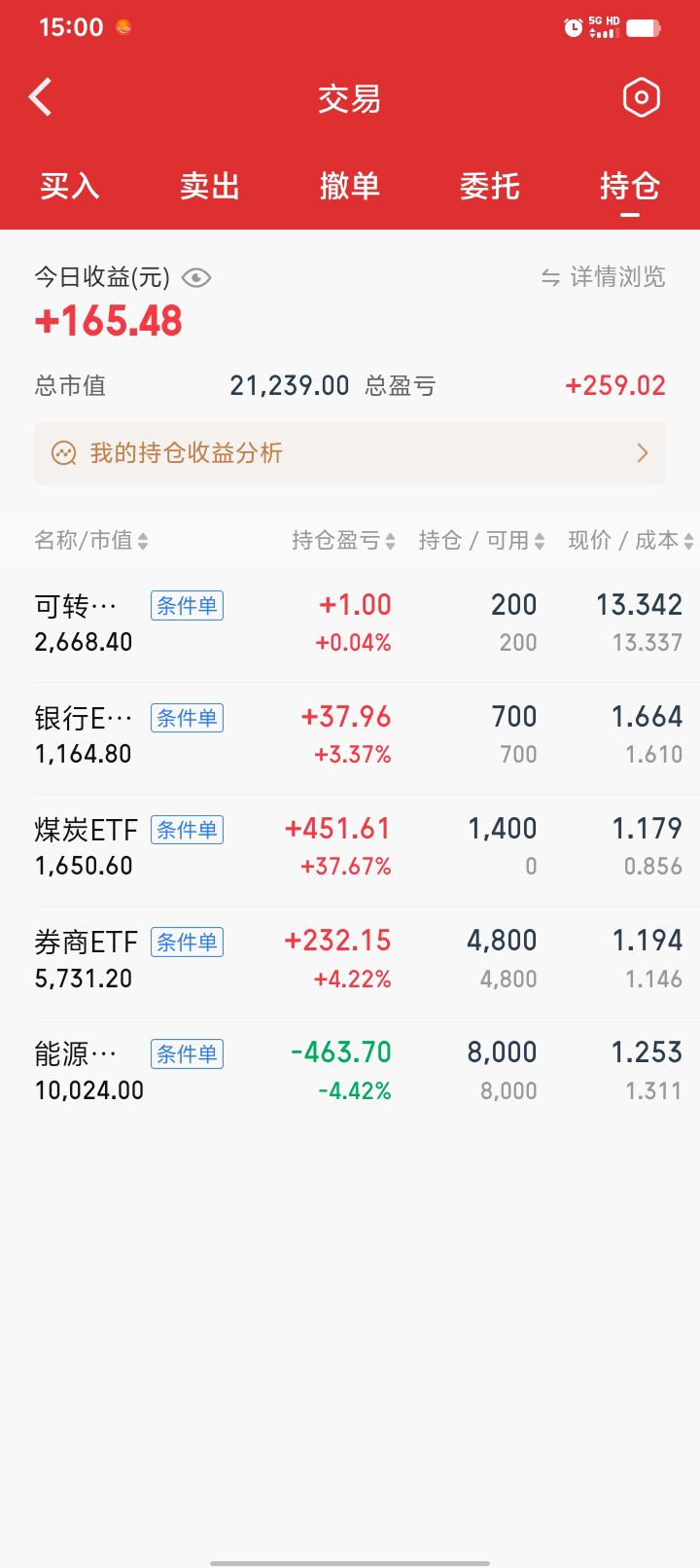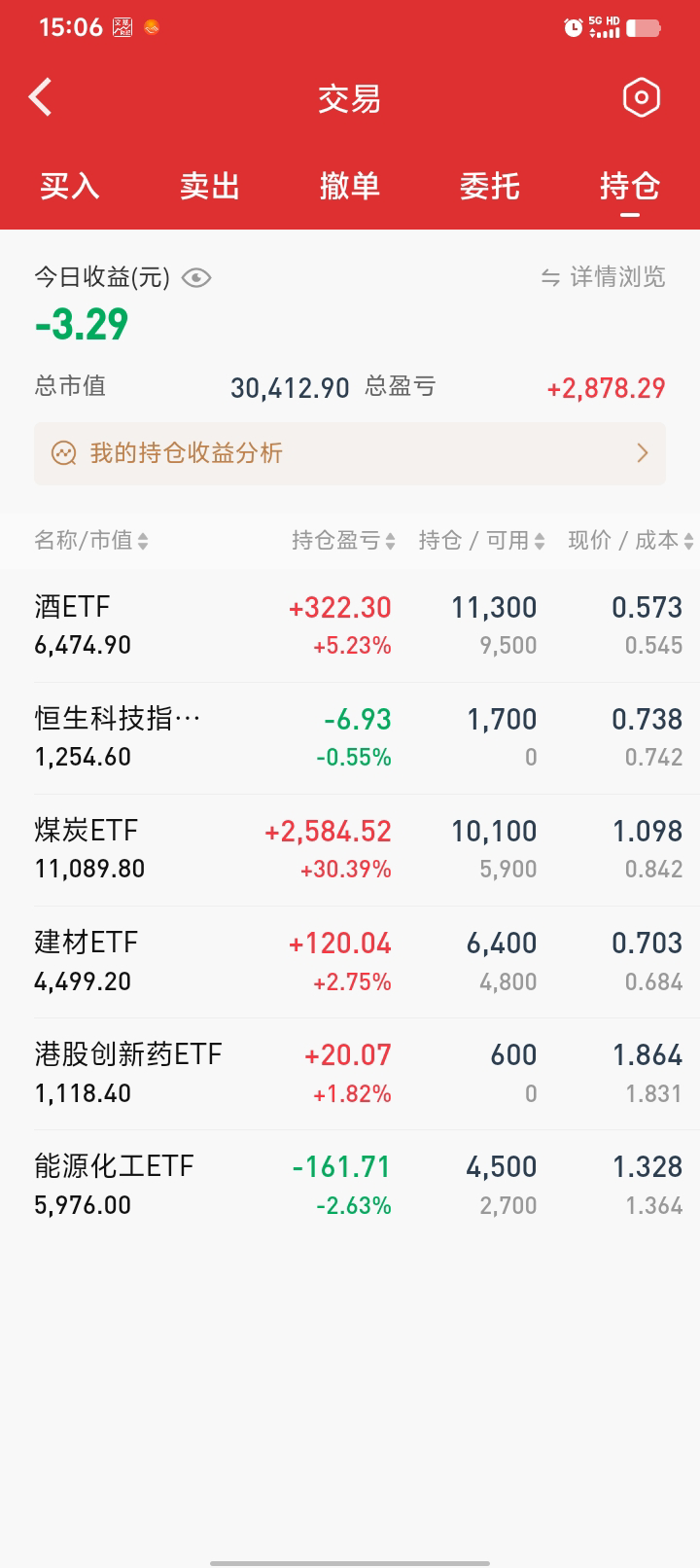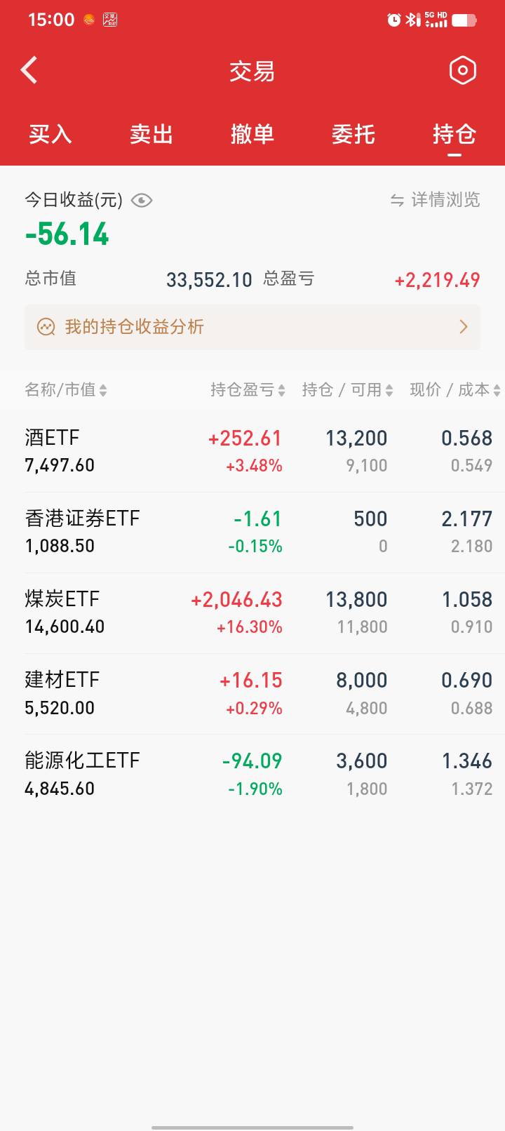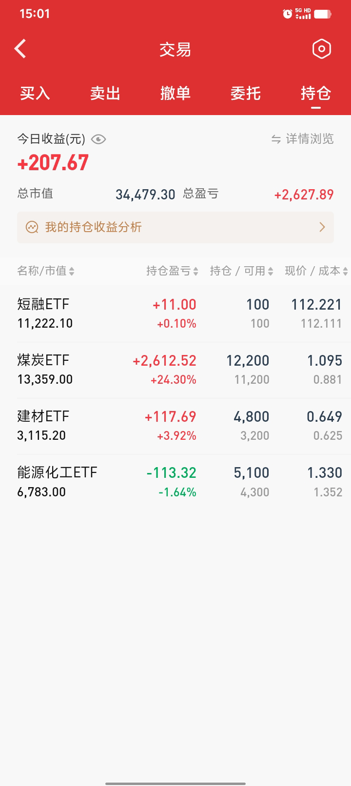 继续网格,清煤炭e,加华安转。期末正2.15万。