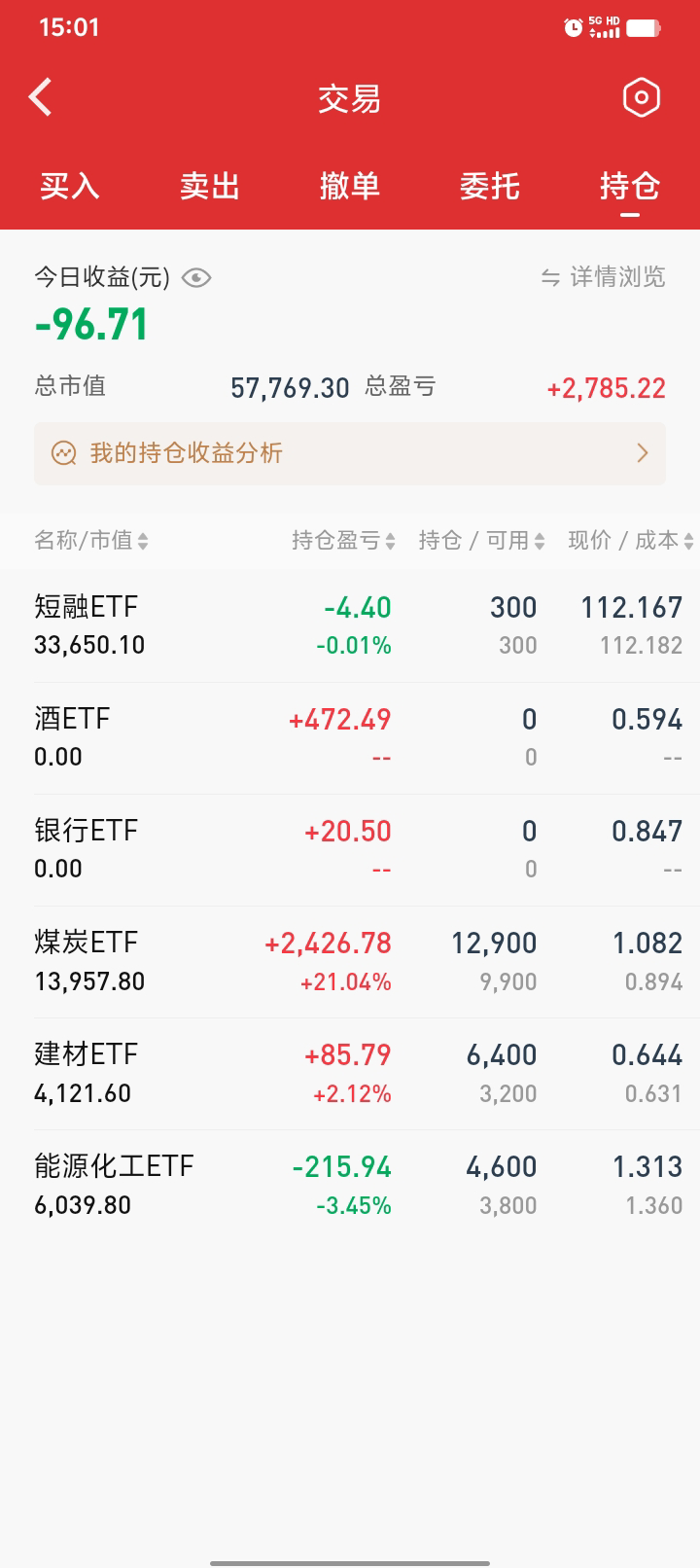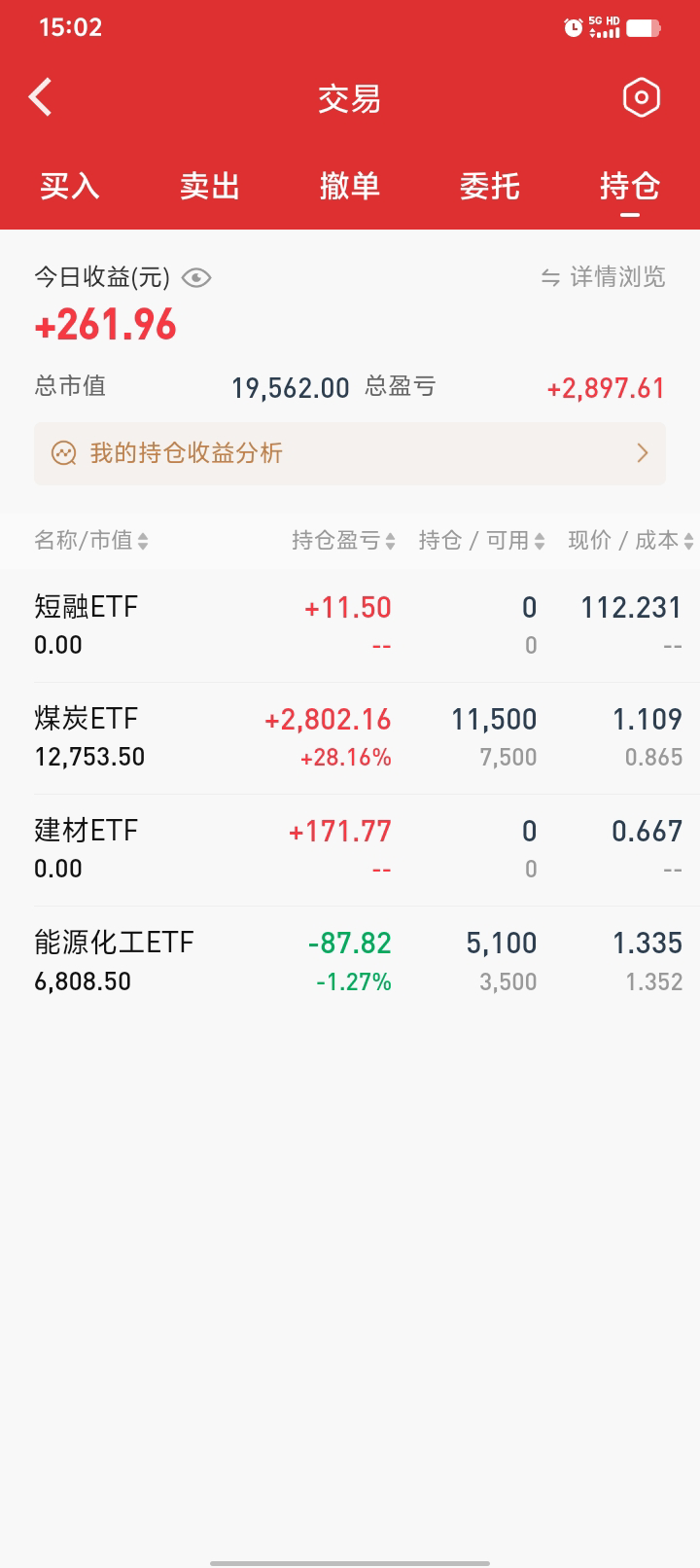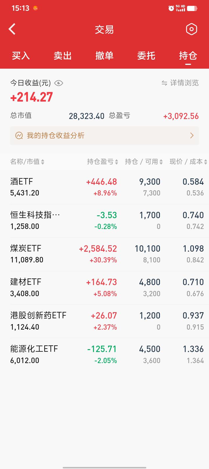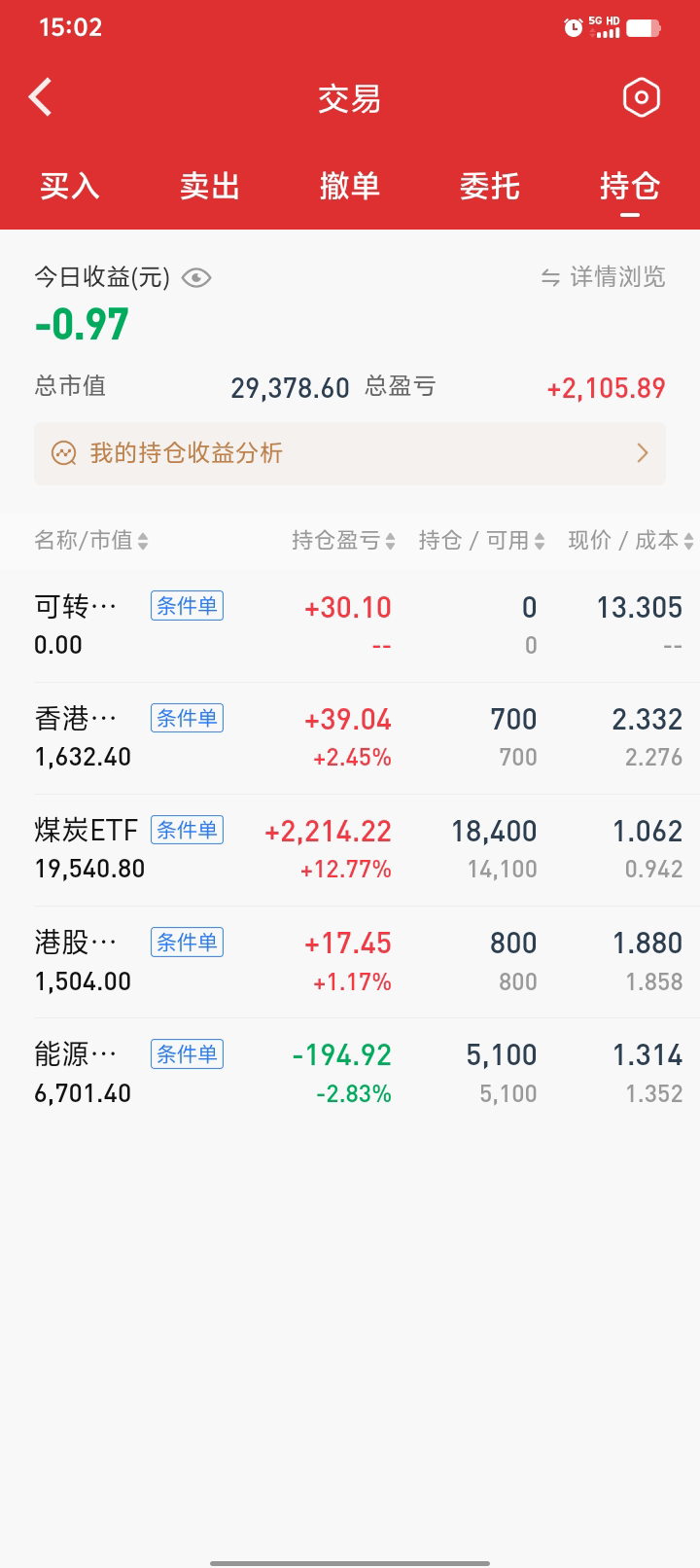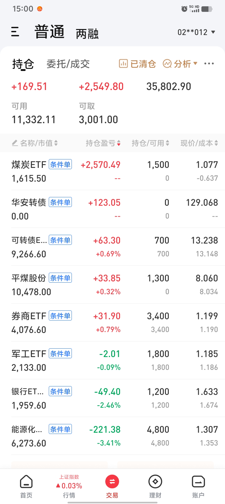 继续网格,清煤炭e,加华安转。期末正2.15万。