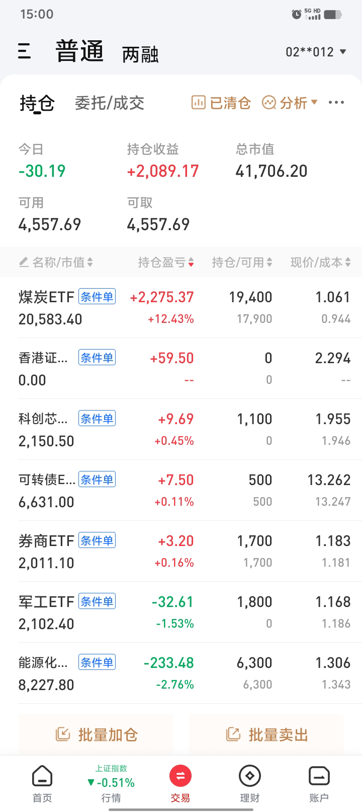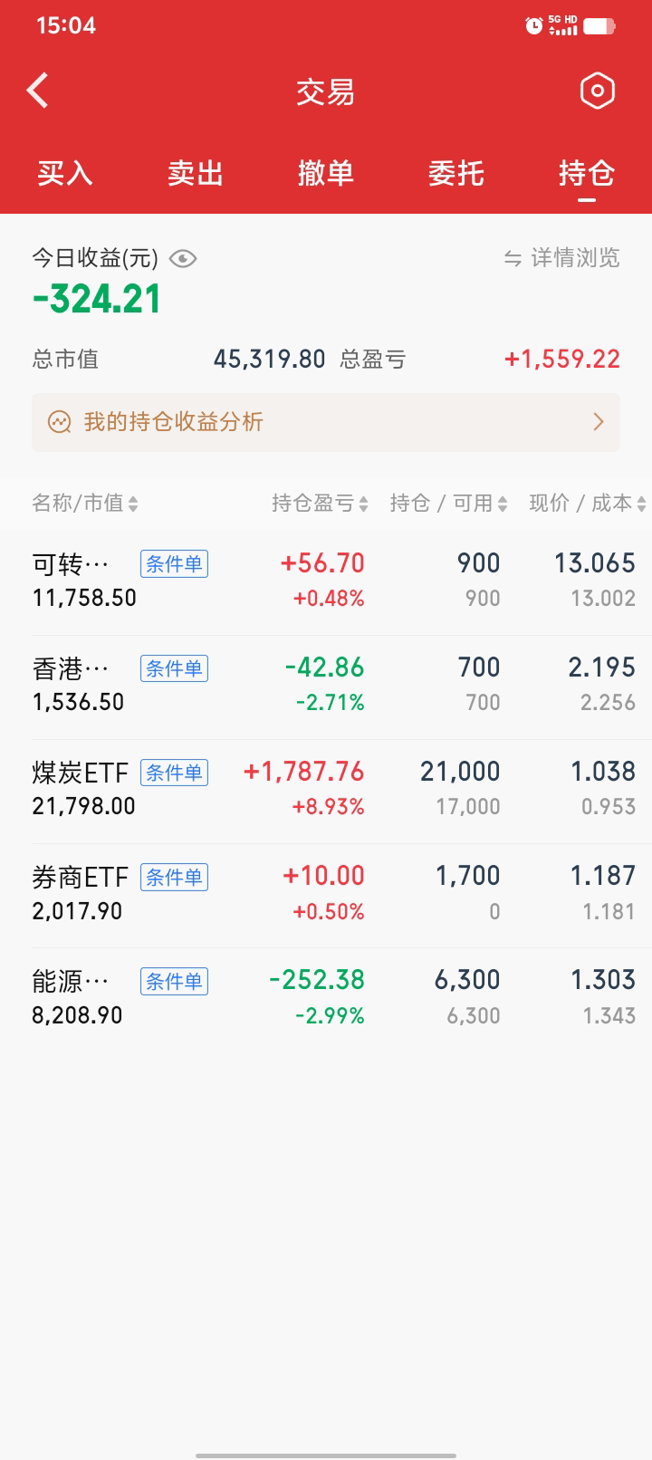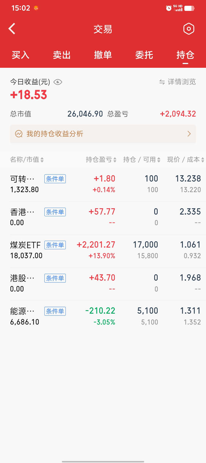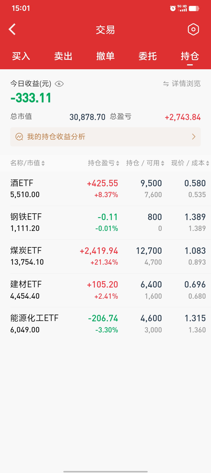 继续网格,清煤炭e,加华安转。期末正2.15万。