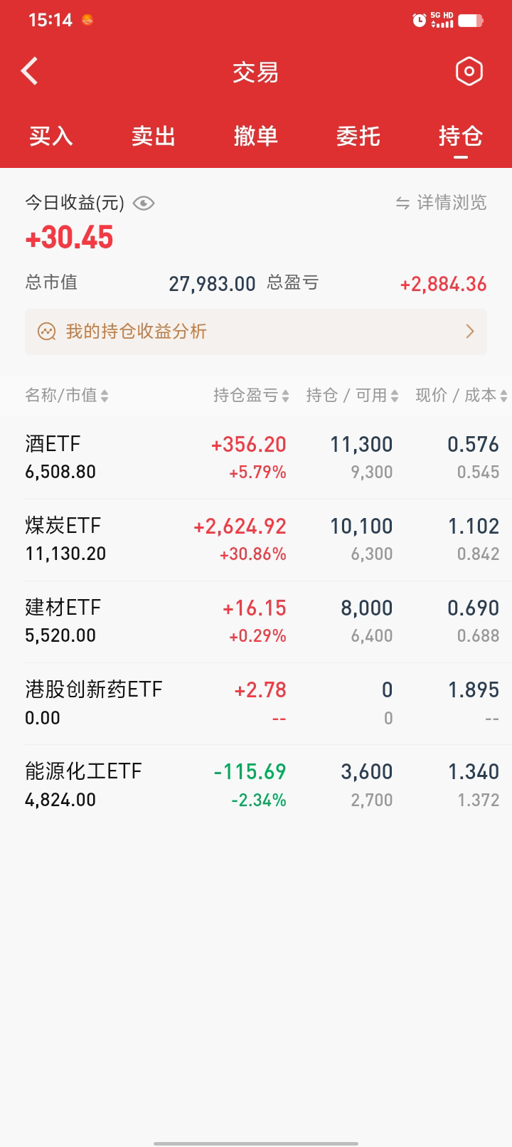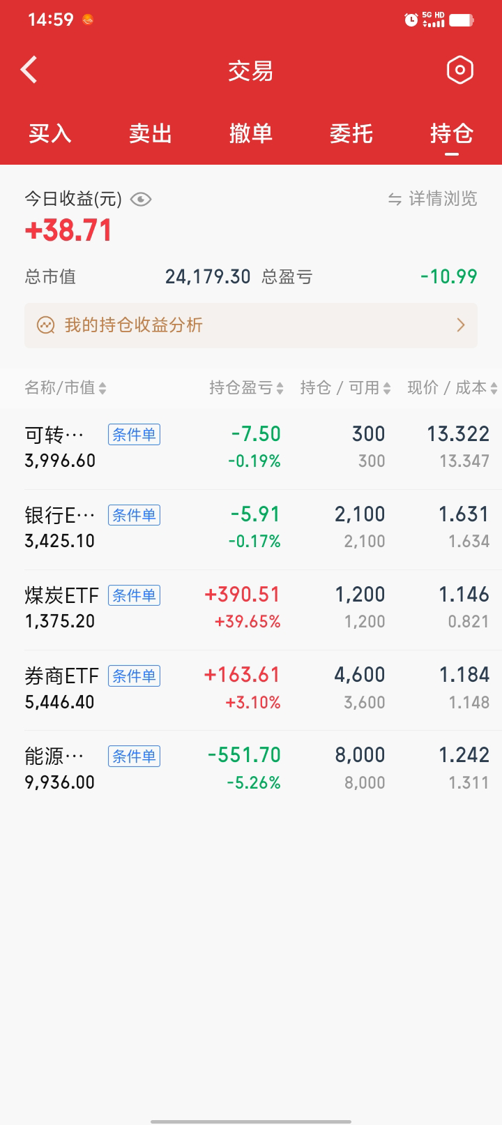 继续网格,清煤炭e和银行e,重新进创新药。煤炭表现可以,择机买回。银行不行,以后不要了。期末正2.39万。