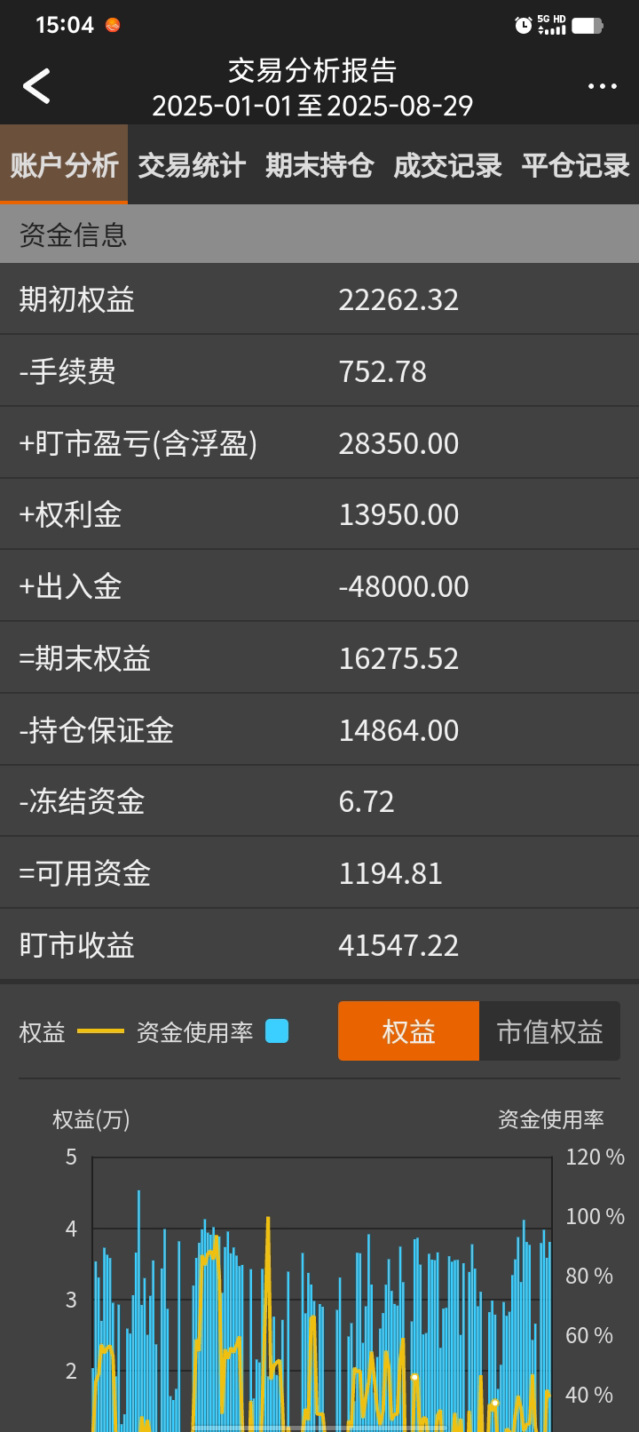 继续网格,期末正2.01万。没啥仓位,也没啥波动,慢慢熬吧,大盘大涨略有不爽,哈哈。坚持自己的操作就好。