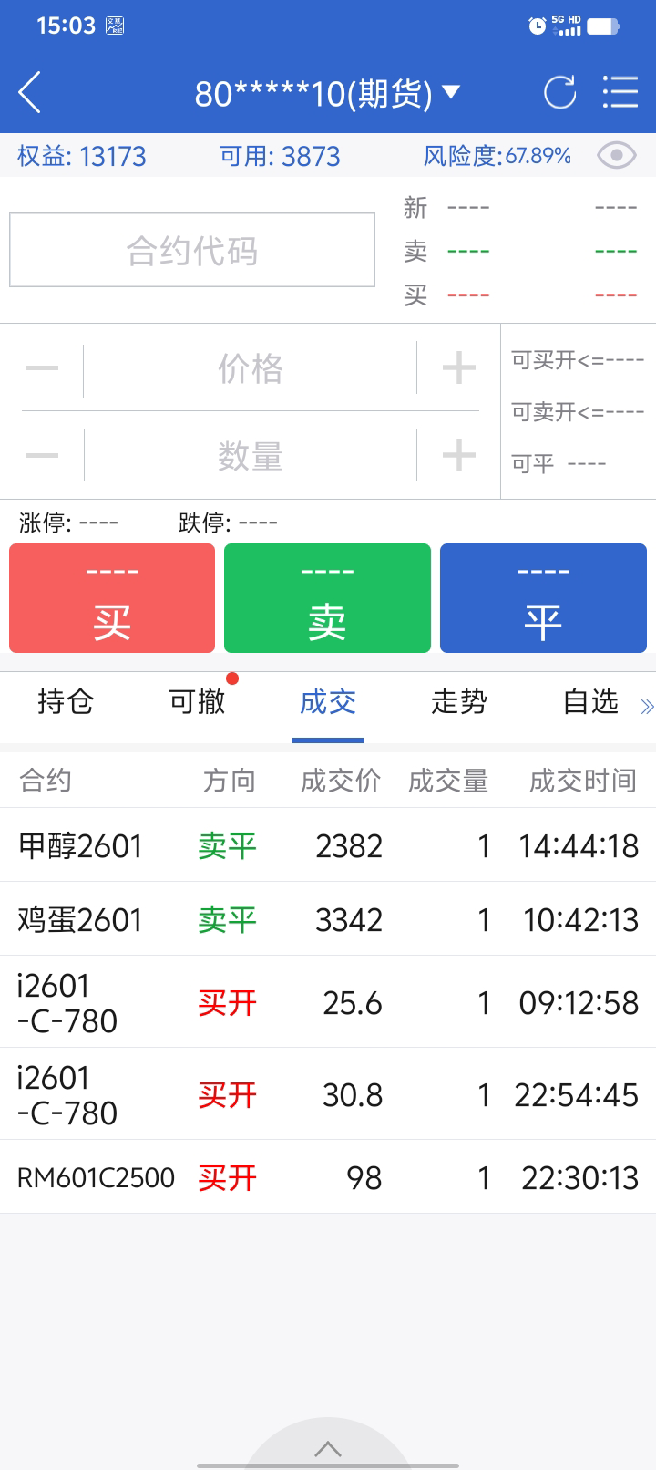 除第二份铁权,其他都没按计划。98进粕权,30.8/25.6进铁权,3342出鸡蛋,3304进,正370块,2382出醇,2361进,正200块。
