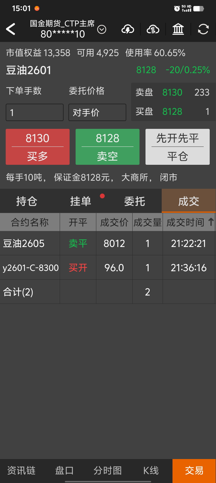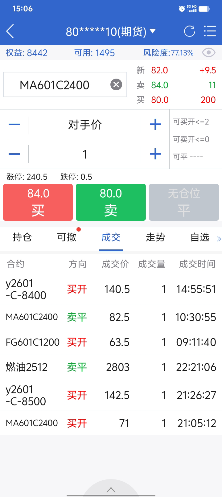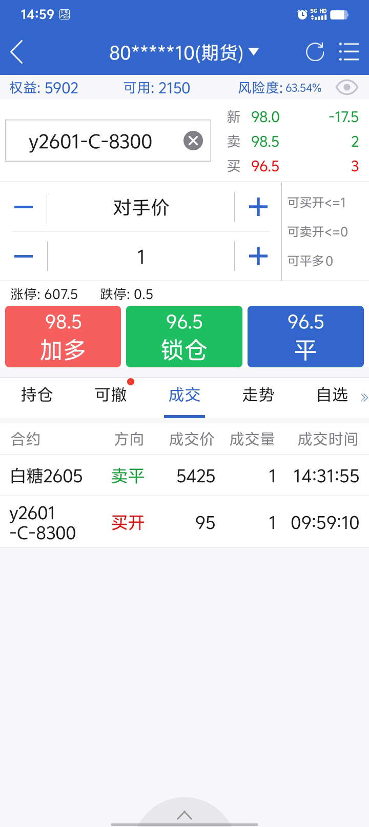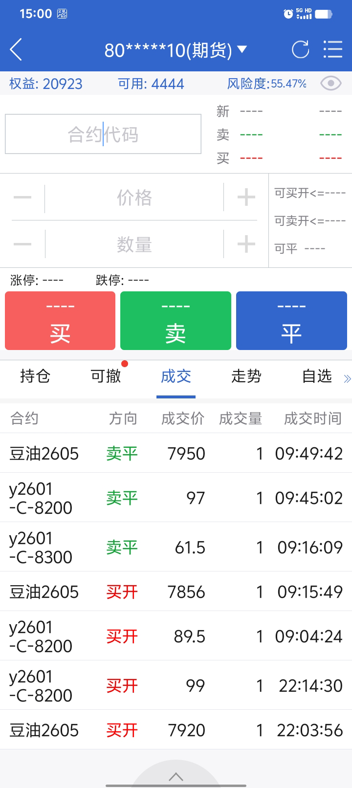 最后两次按计划,其他没。7920进y05,7856加,7950出,正930块。99进油权8200,89.5加仓,97出,正70块。61.5清油权8300,亏340块。今天的交易就是加油,好在运气不错,有一波反弹出局减仓,还是急了,捂脸。逢大跌进场是对的了。