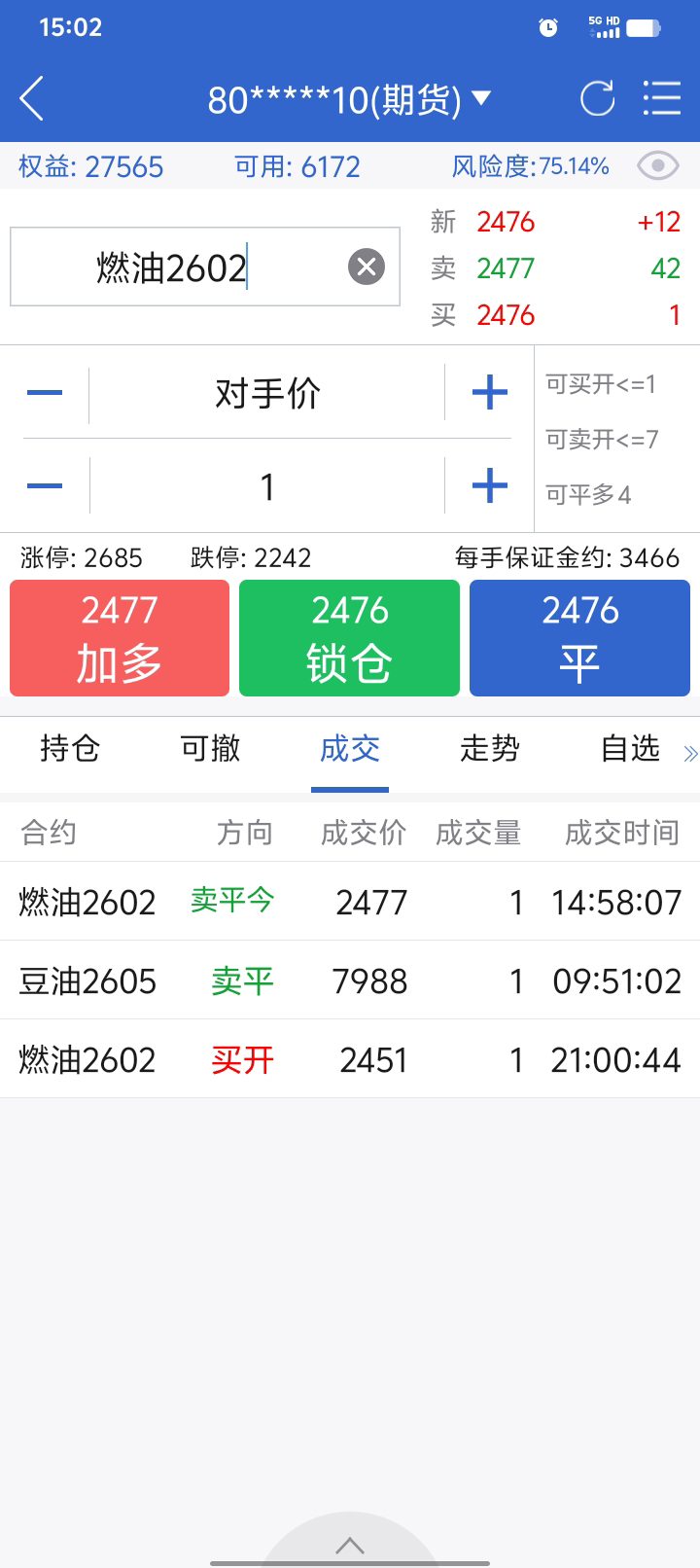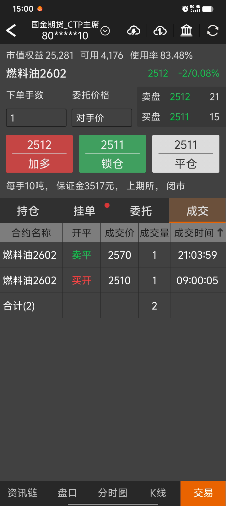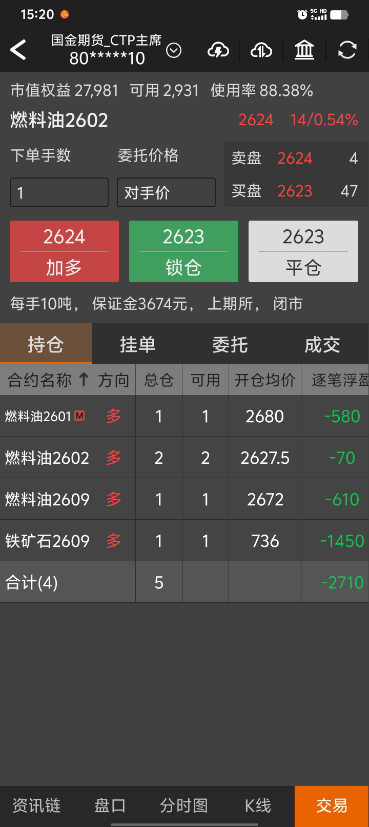 按计划2612加fu02,期末正3.39万,回撤约6000块,油真能跌,5手了,后面缓加仓,别像v一样,呵呵。