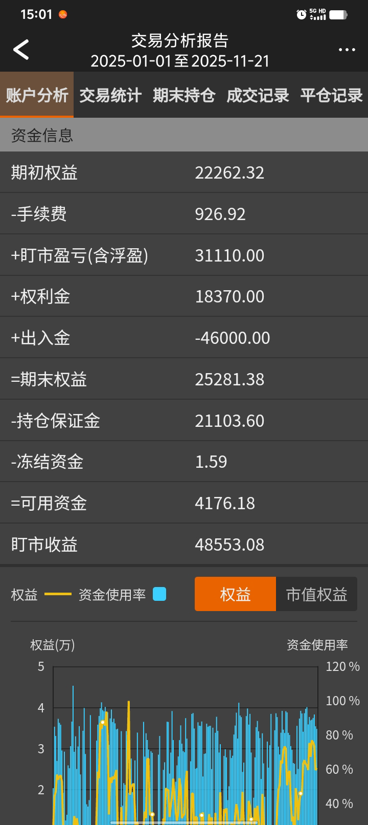 2024交易结束,收益18.7%,有史以来第一次年收益超10%,捂脸。2025年期初73.48万,目标还是6-8%,亏一点也可以接受。大概的框架,还是网格交易,逢跌买入,以15日/周线和涨跌幅定仓位。基金,铁矿和其他期货期权品种各1/3的仓位(期货和期权以对应的合约价值计)。一段时间内某个品种仓位重了就微调其他2类,底线是总资金无杠杆。网格间距,期货4%,期权2%(对应期货品种的2%),基金1.5%。期货期权手续费不超1000(今年1421,套利不做了,应该没啥问题),基金500以内(今年要是不买浙商,也不多)。