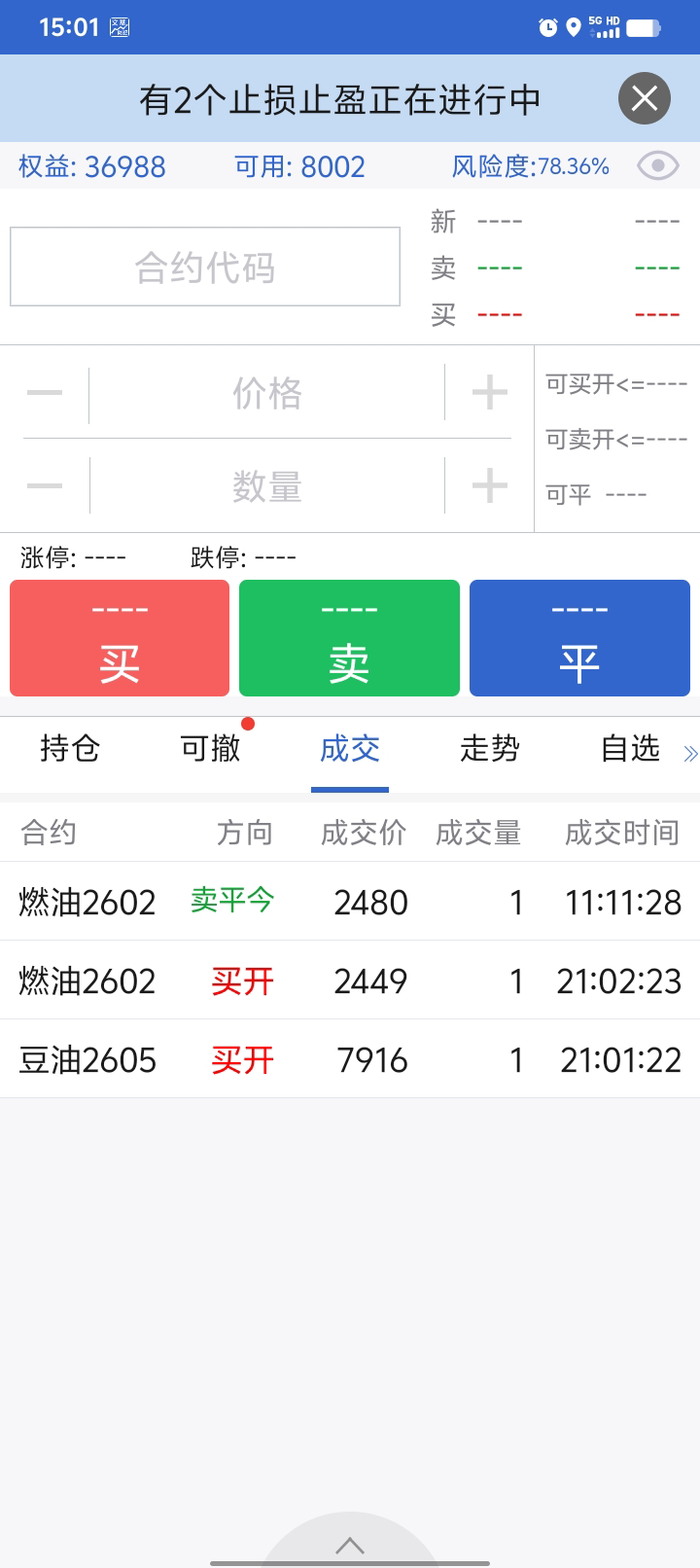 按计划交易第三天。86出粕权,正90。79.5出醇权2350,正130块。122进糖权5400。133出油权,正40块。2852出fu12,正500块,2805接回,这个运气不错。期末正3.81万。后面暂时就这四个品种折腾,豆油尽量不进。