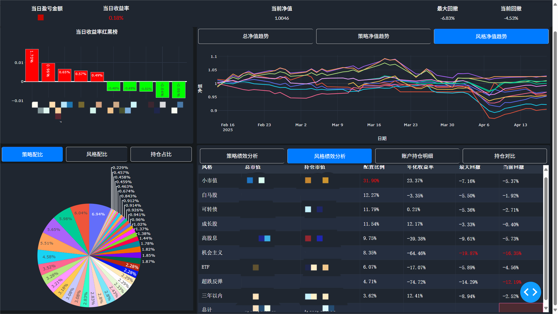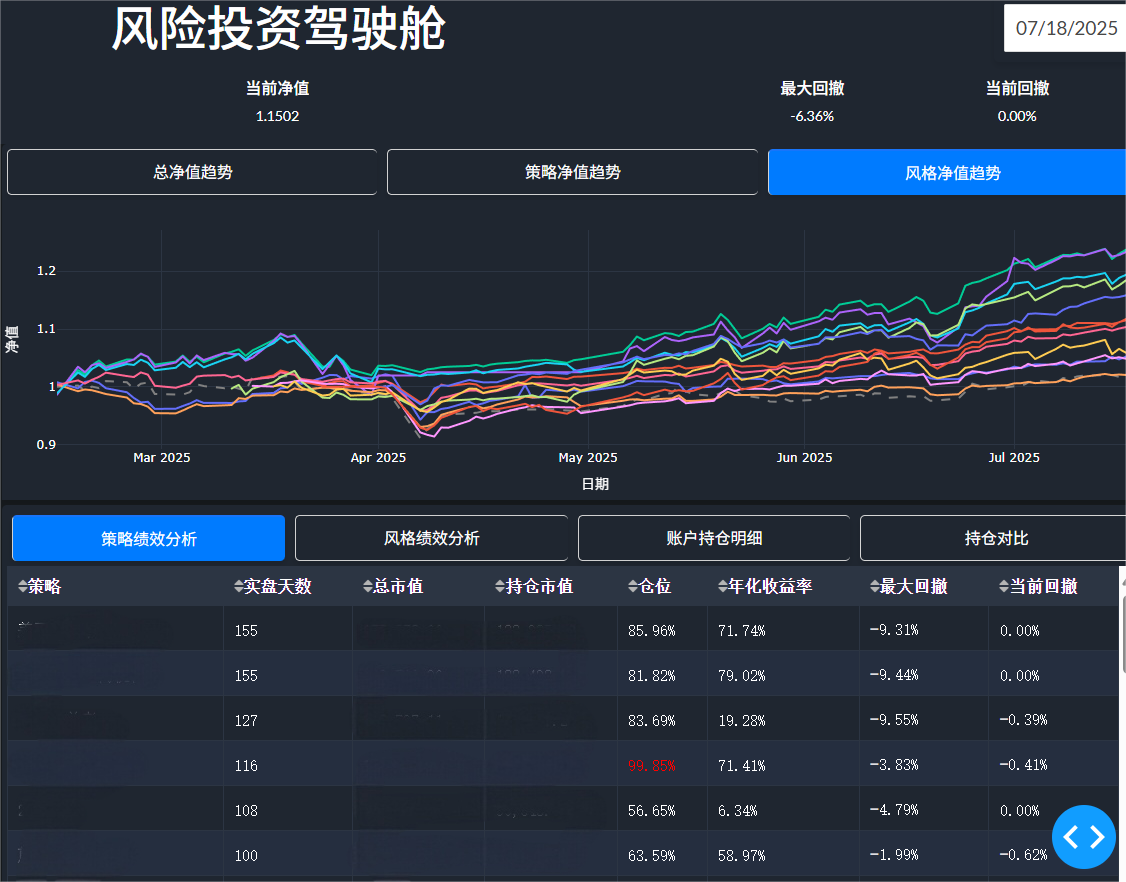 现在持仓是个巨大杂烩,感觉需要做个什么工具,用来看单个策略表现、不同风格策略组的表现、策略仓位比例、策略风格比例。这样跟踪分析,决定应该持有哪些策略、哪些风格及资金增减。