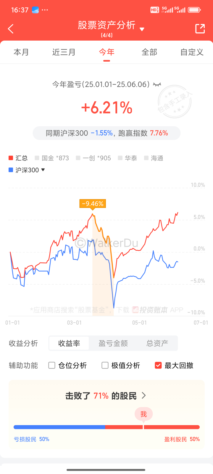 节后大盘焕然一新啊,账户总算浮出水面,年度收益0.77%,仓位88%。