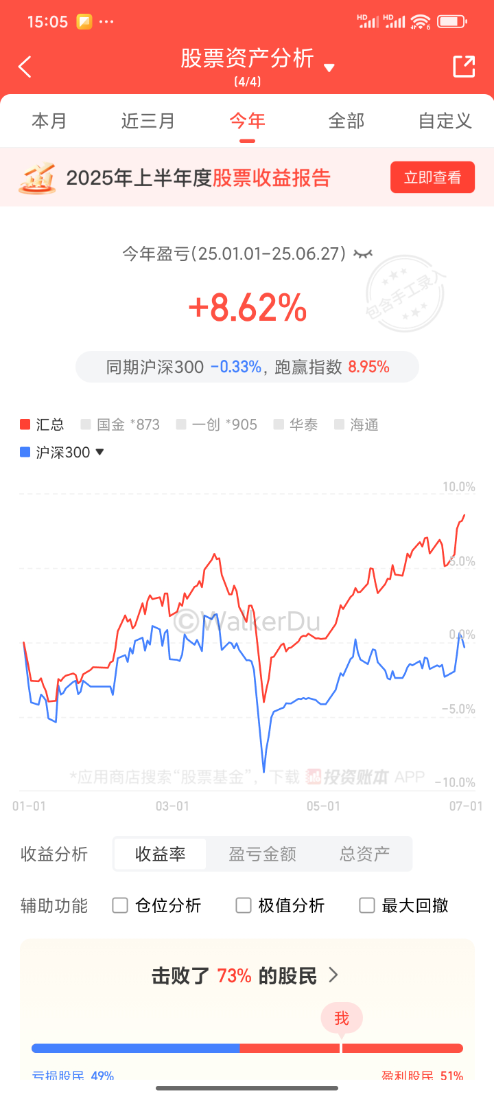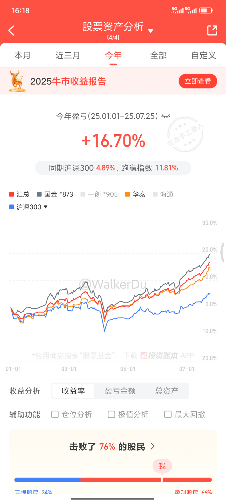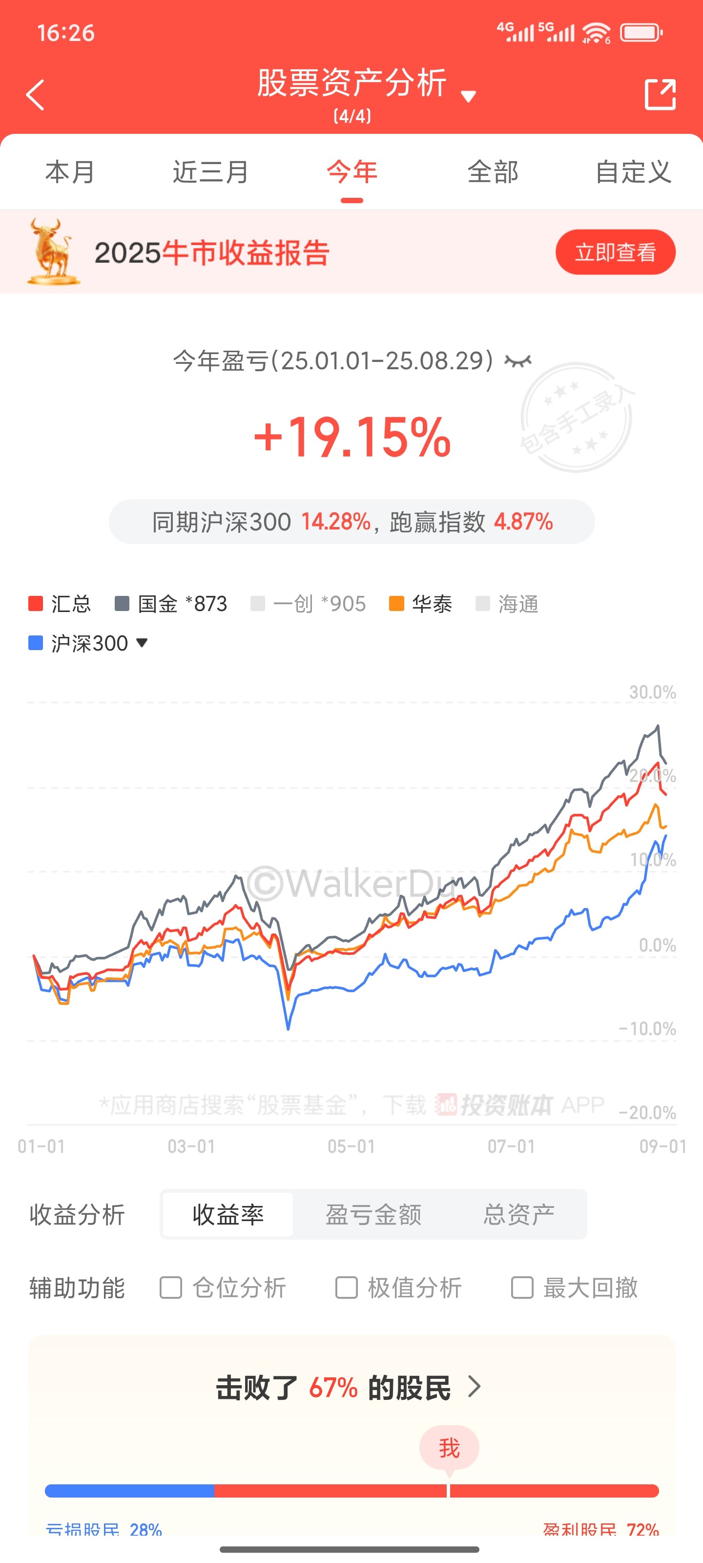 年度收益16.7%,仓位91.8% 人生哪得尽如意,出游身体不适,租车莫名其妙车损,每天两次手机远程处理cookie异常,这些情况以前基本上都没遇到过,相比之下为了在牛市保持仓位而仓促买入真就不算什么了。