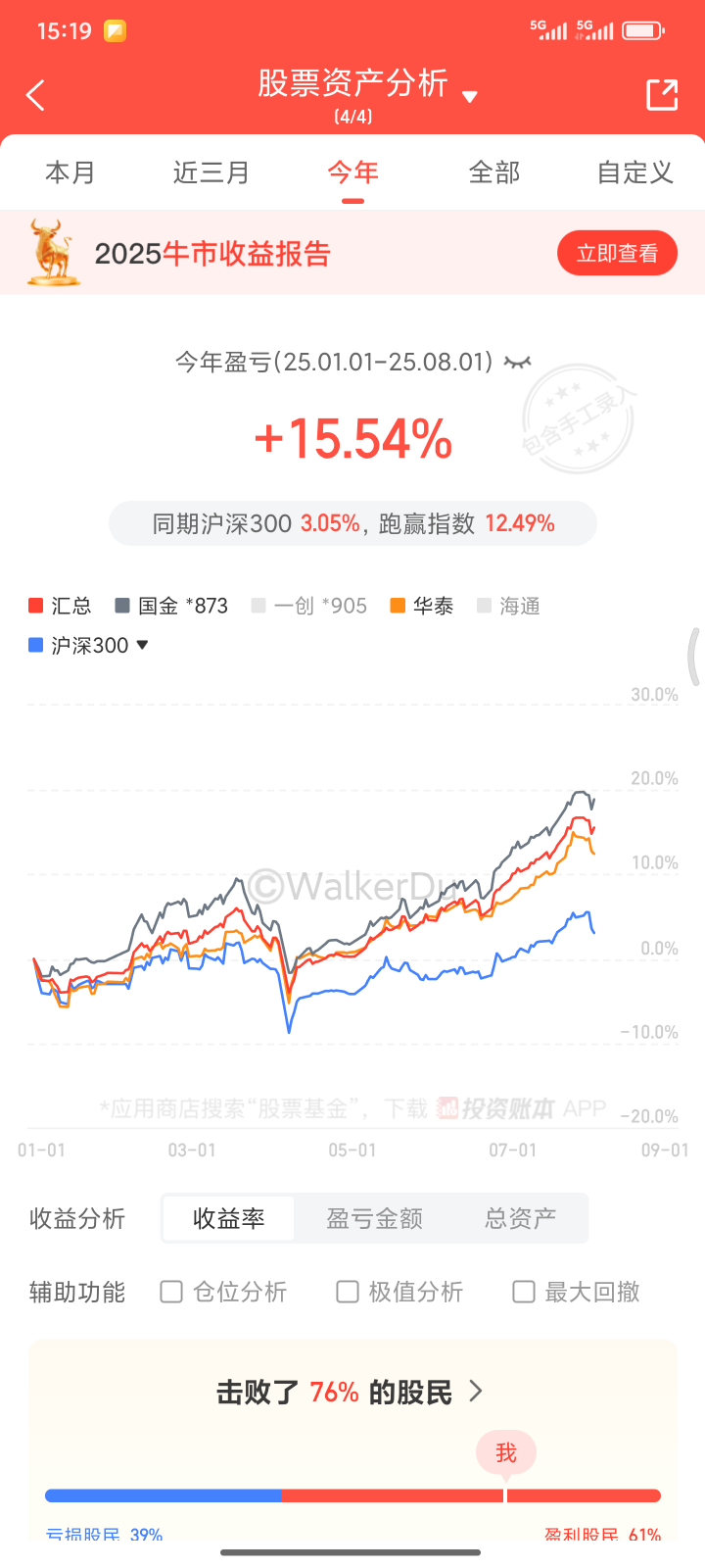 月底亏得稀里哗啦的,年度收益19.1%%,仓位93.6%