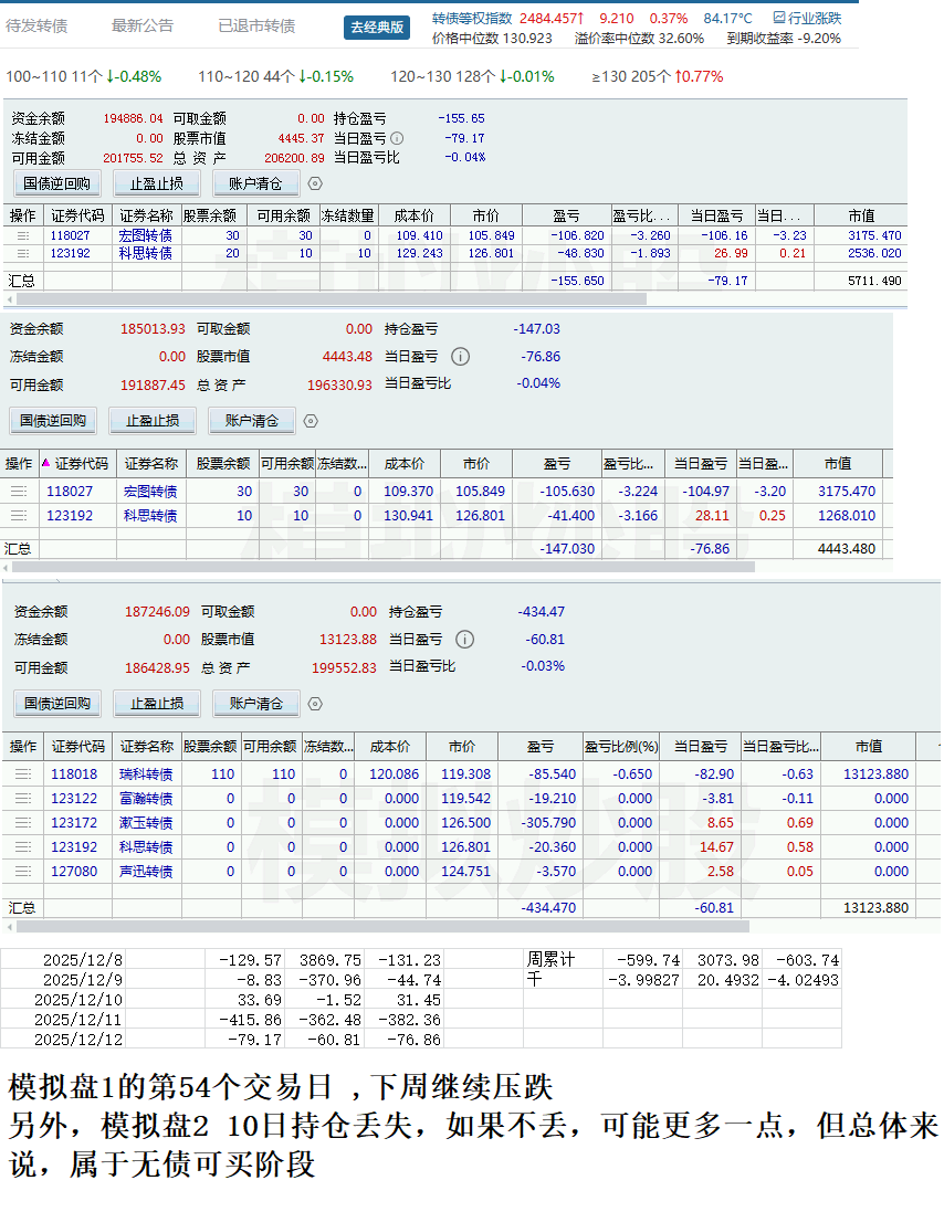 PS:转债估值可能要下降了,亏损当是常态,面对疾风吧,模拟盘