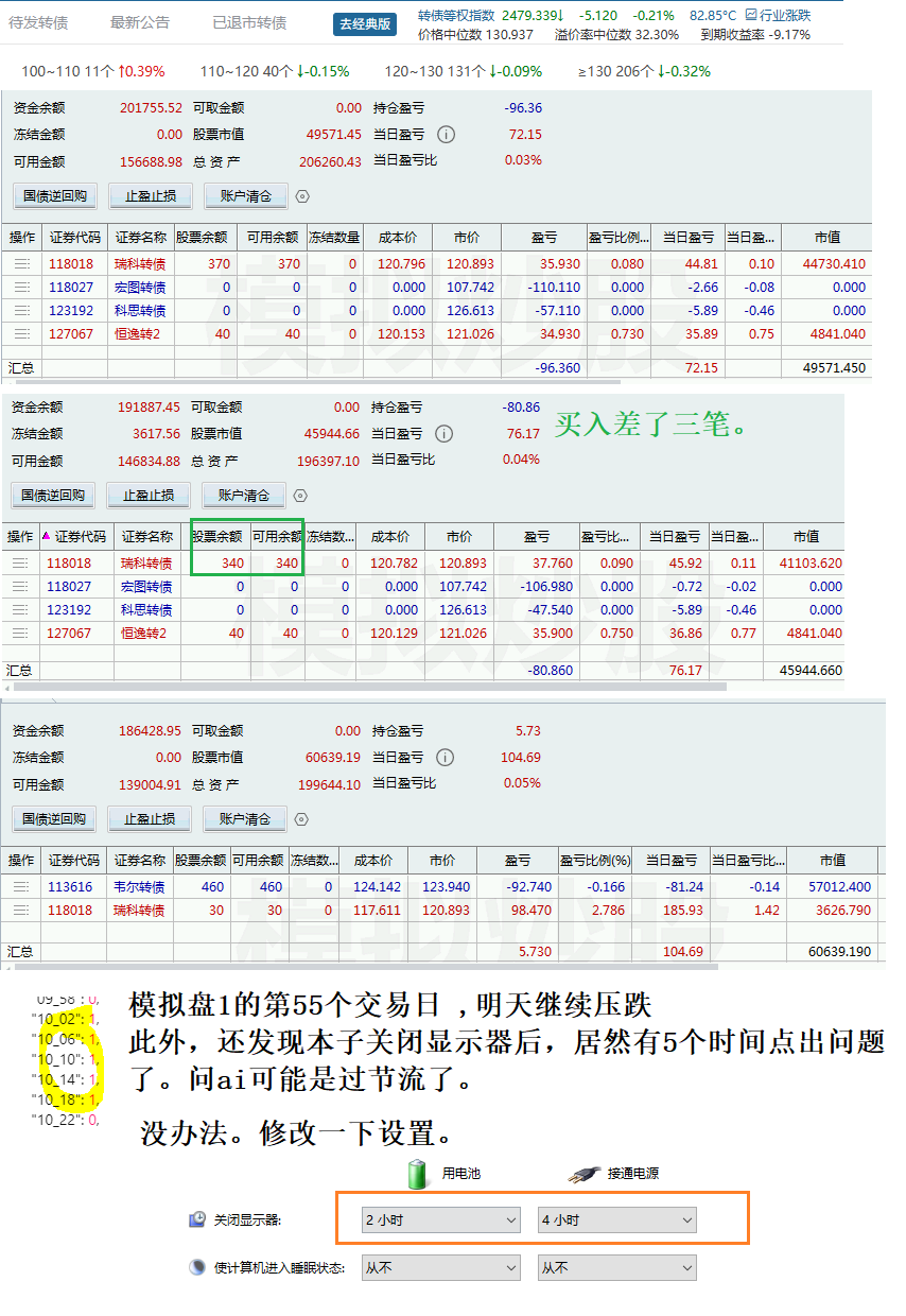 模拟盘1的第48个交易日 ,明天继续压跌,人在外,只能远程截图