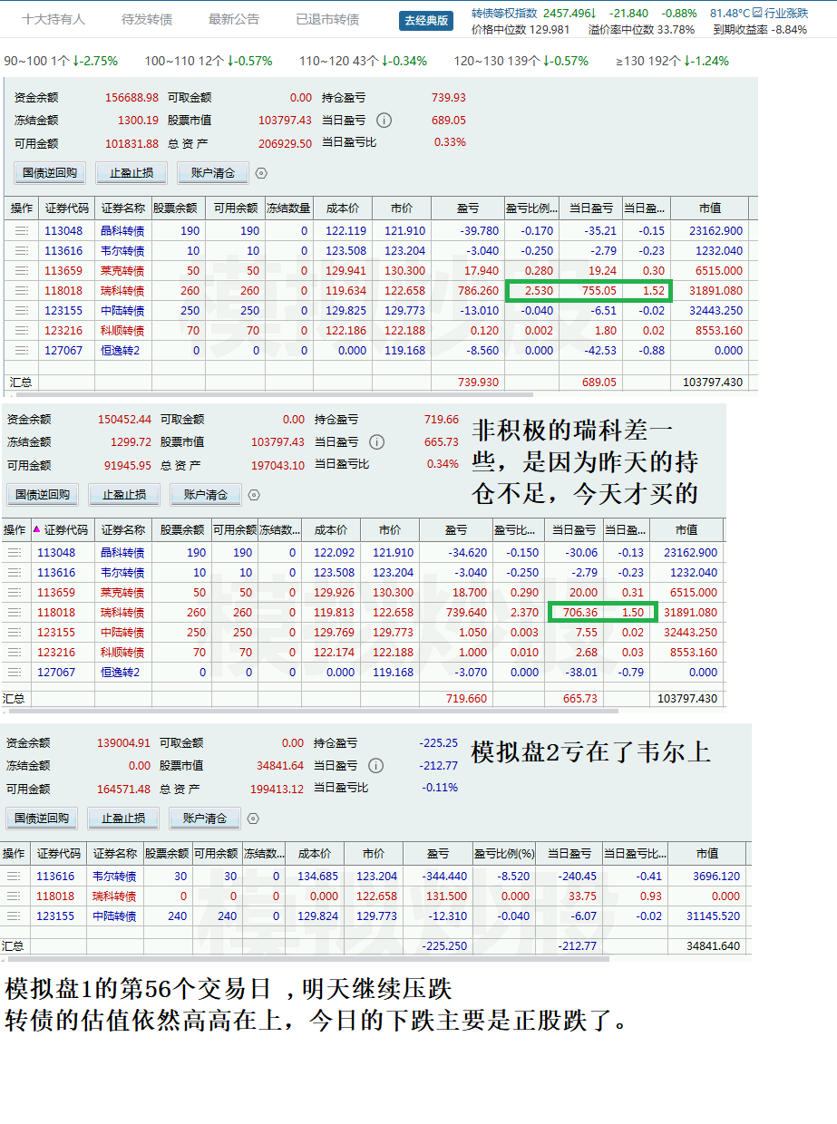 PS:转债估值可能要下降了,亏损当是常态,面对疾风吧,模拟盘