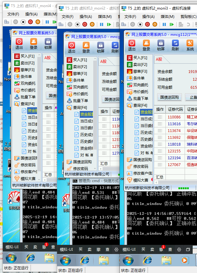 3、虽然周末时间浪费了,但本着残值利用的想法,依然把长期不太行的【加入正股涨幅要求】做成了模拟盘3,用hyper-V 装个win7,在4600H这个模拟盘1的物理机上运行,虽然今天净买入是完全无意义的,但是,明天开始,可以和模拟盘2进行对比了,且发现: