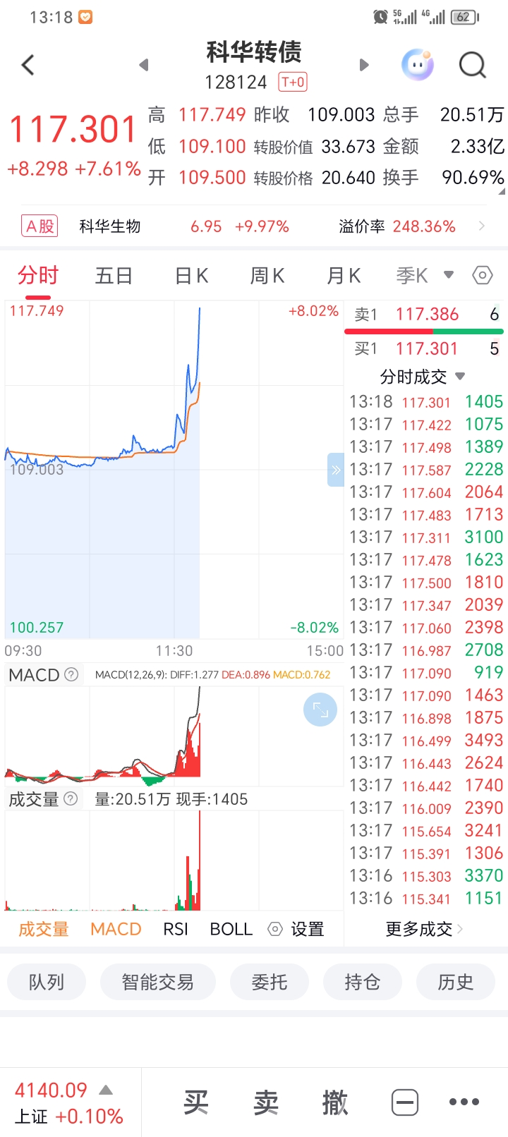 另外现在转债整体估值不低,好多下不去手,买科华就是在跌幅有限的情况下耗时间,博取一个波动的可能性,等待转债整体估值下来后可以卖出买入较好的品种。
