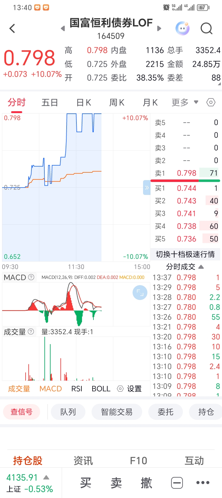 今日继续回血,离新高还差0.15%,均价109.3卖出昨天买入的800张恒逸转债,买入招商双债,中间顺带做了几把T,T了1/3的柳药转债,T了全部的顺博,成本降低1元,卖出兴全合兴,买入标普医疗,卖出昨天买的美国REITs,买入招商双债。