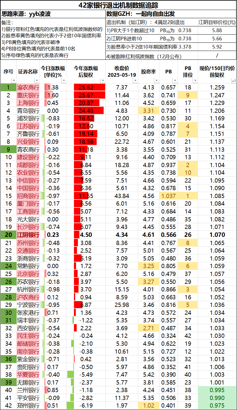 随着江阴分红由每股分0.19元增加到每股0.20元,也确保了江阴银行会继续留在红利双低标的,而退出通道就只有上涨过多一条路。
