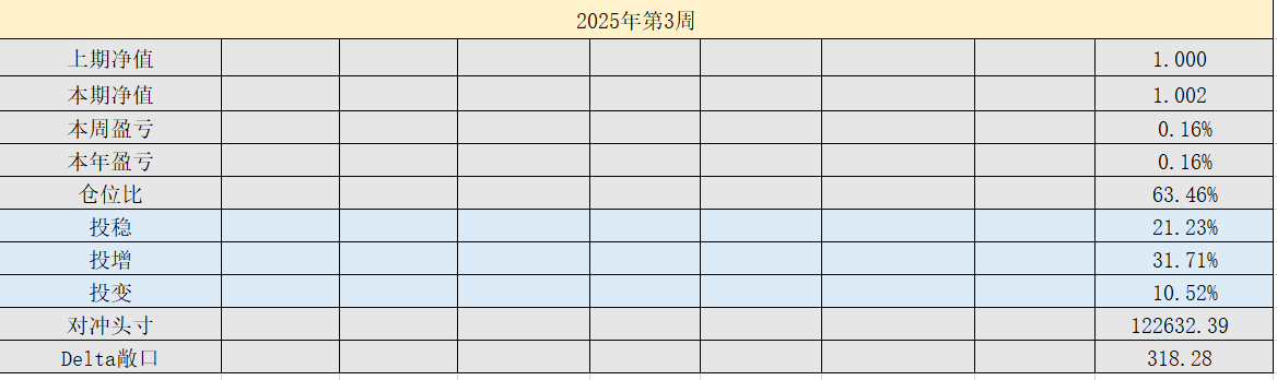 2025年03周,净值:1.002,本周盈亏:0.16%,本年盈亏:0.16%,总仓位:63%