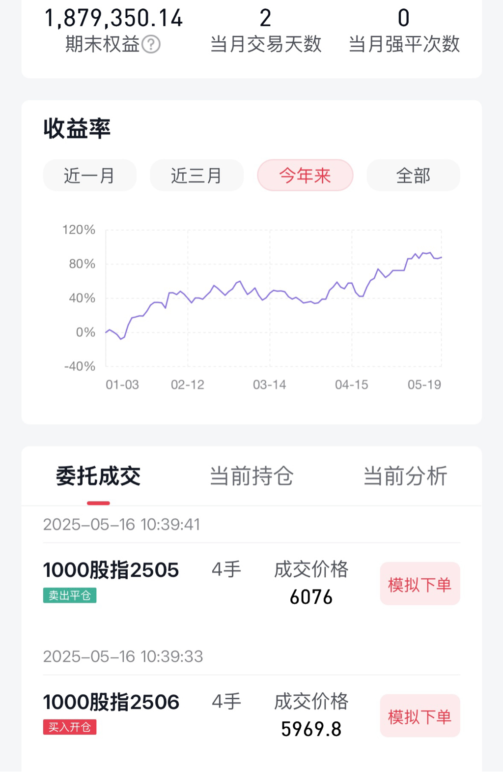 实盘和模拟盘合在一个帖子里,期权是实盘,股指期货是模拟盘。