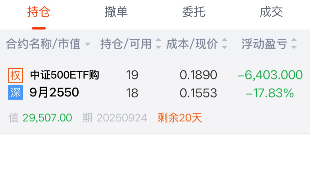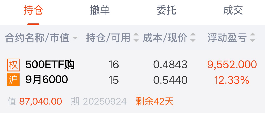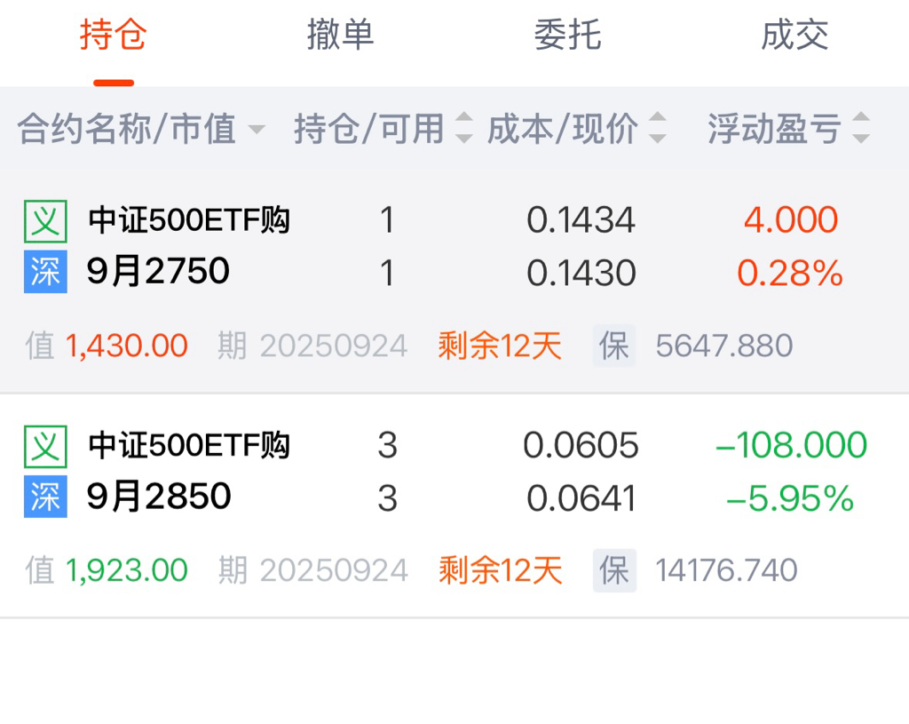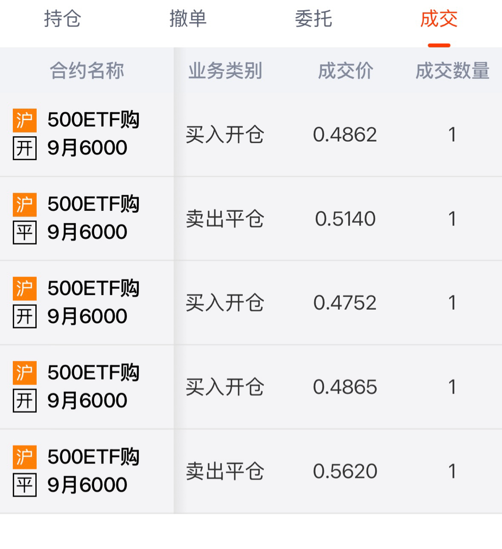 8月ETF500-5750 买购6手 平均成本价0.3149