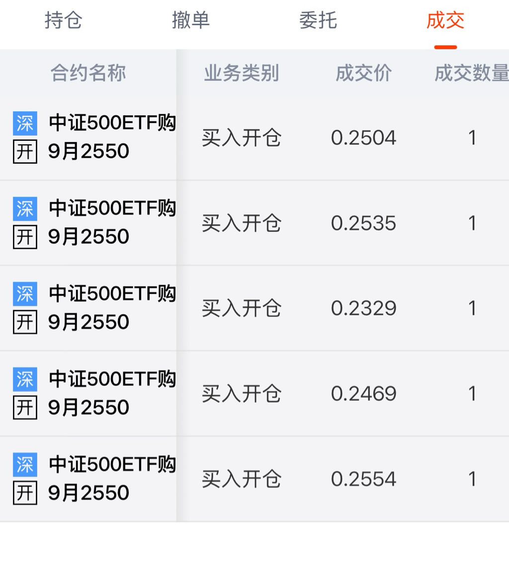 8月ETF500-5750 买购平均成本价0.3149