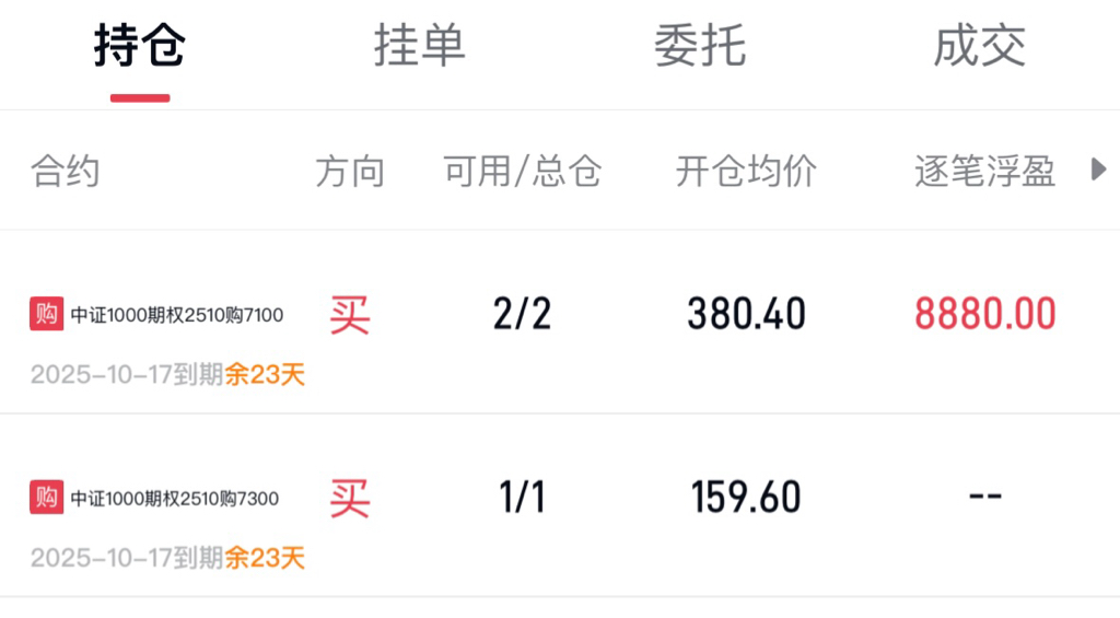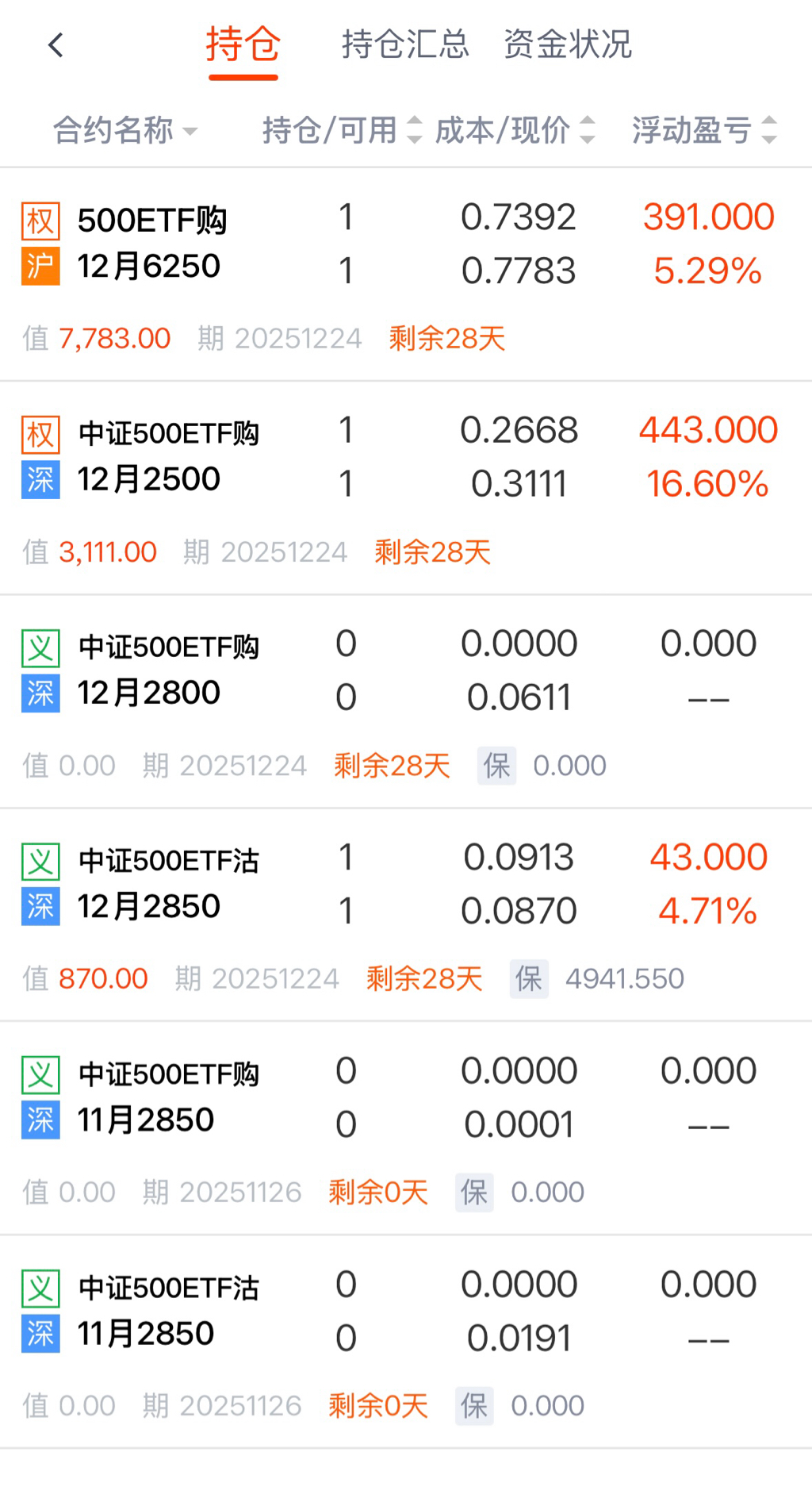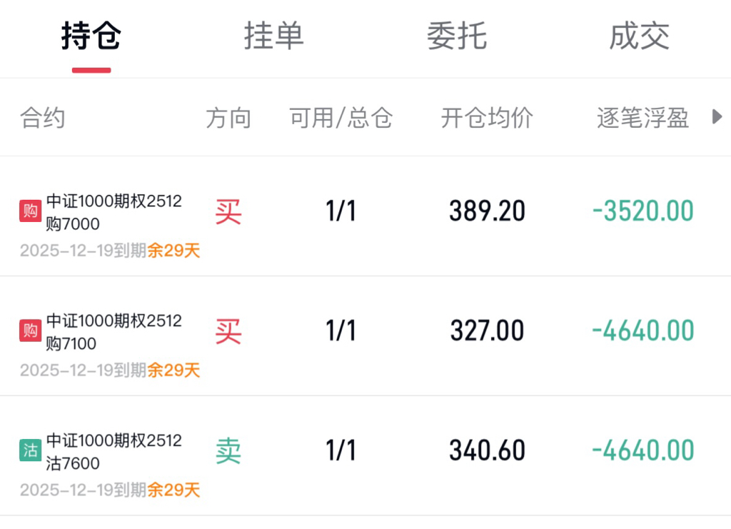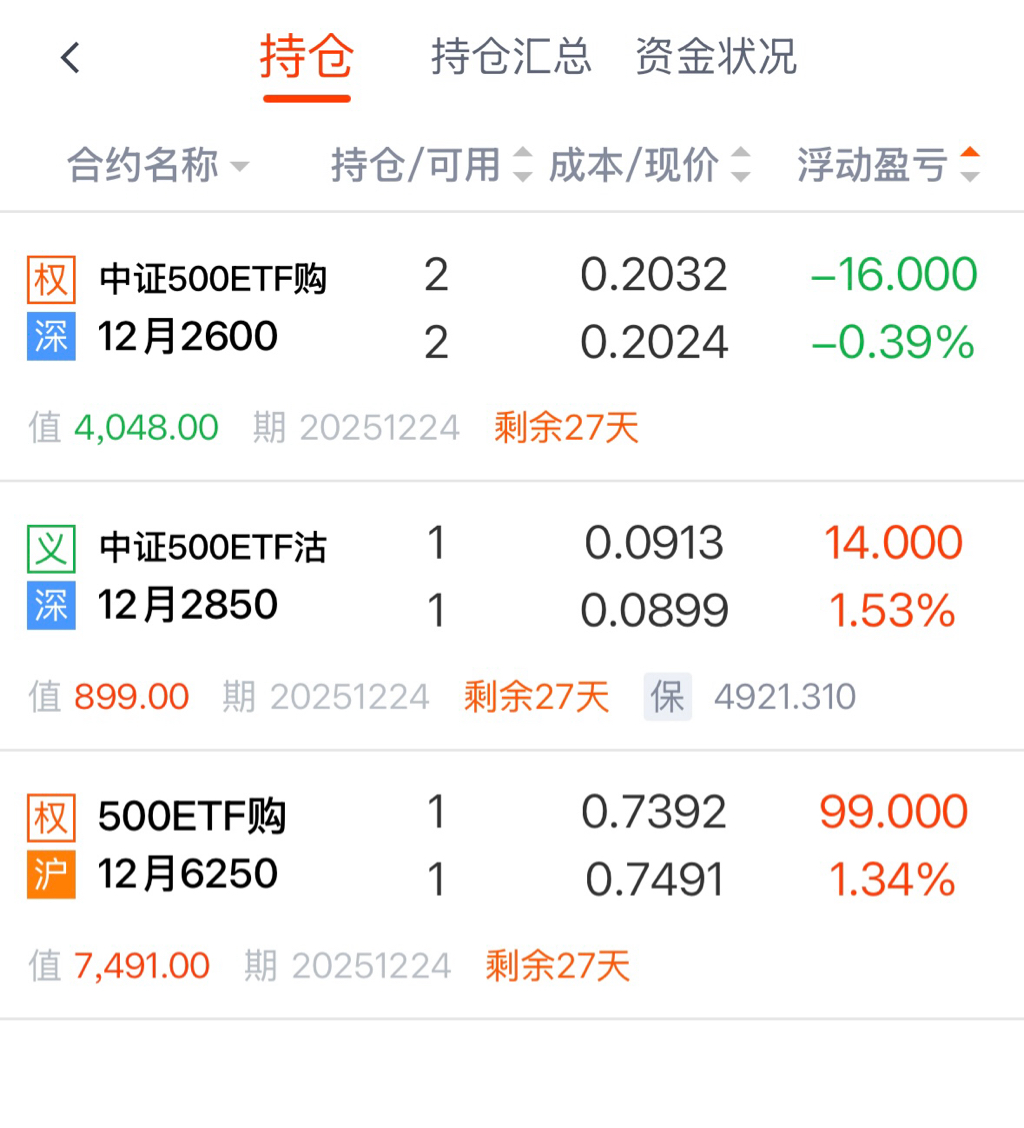 目前仓位有: