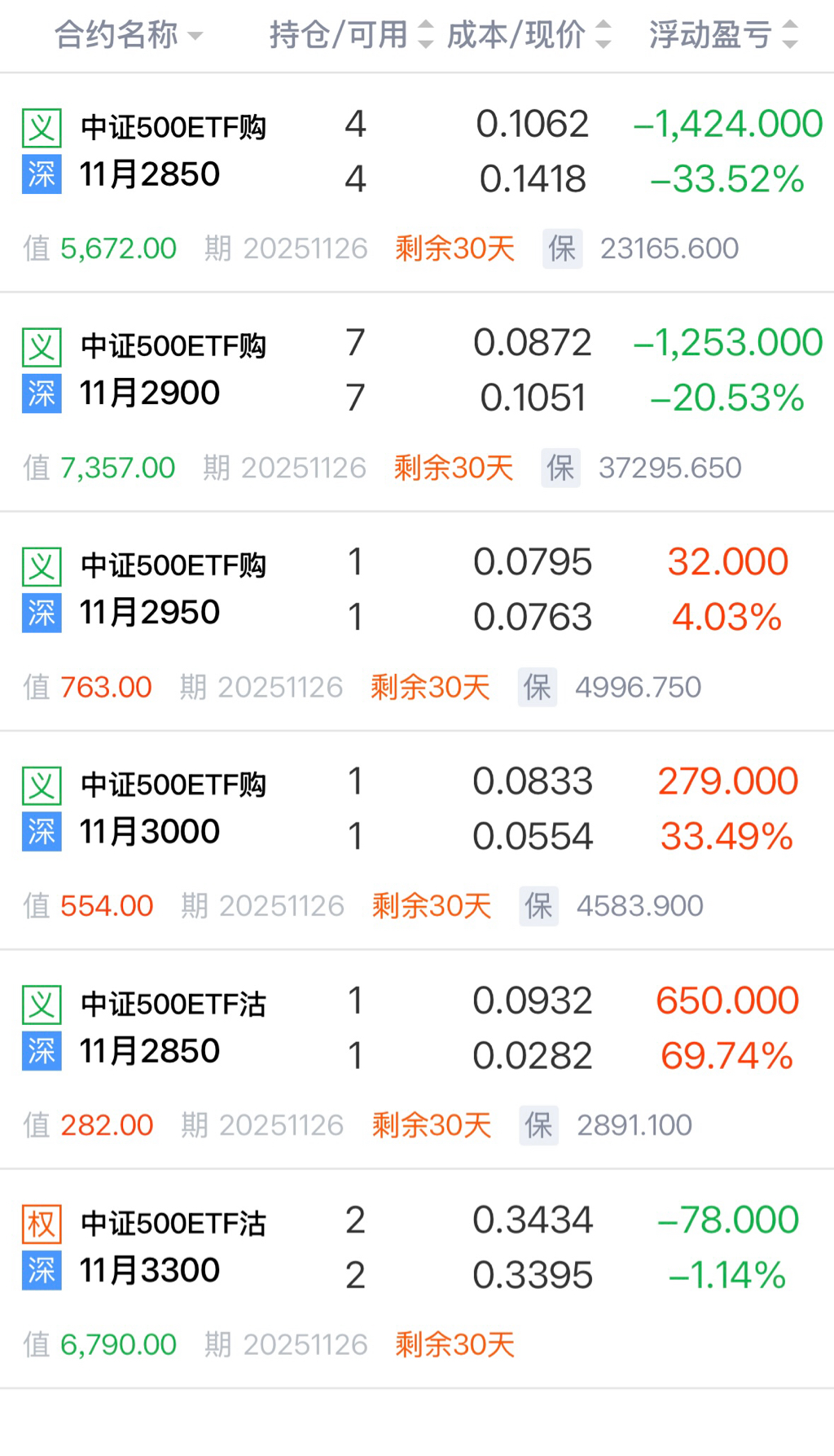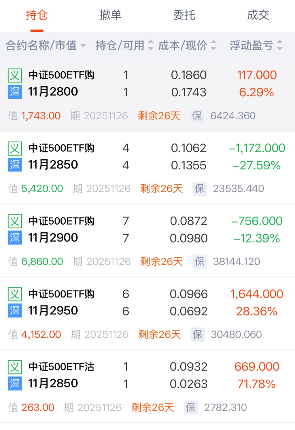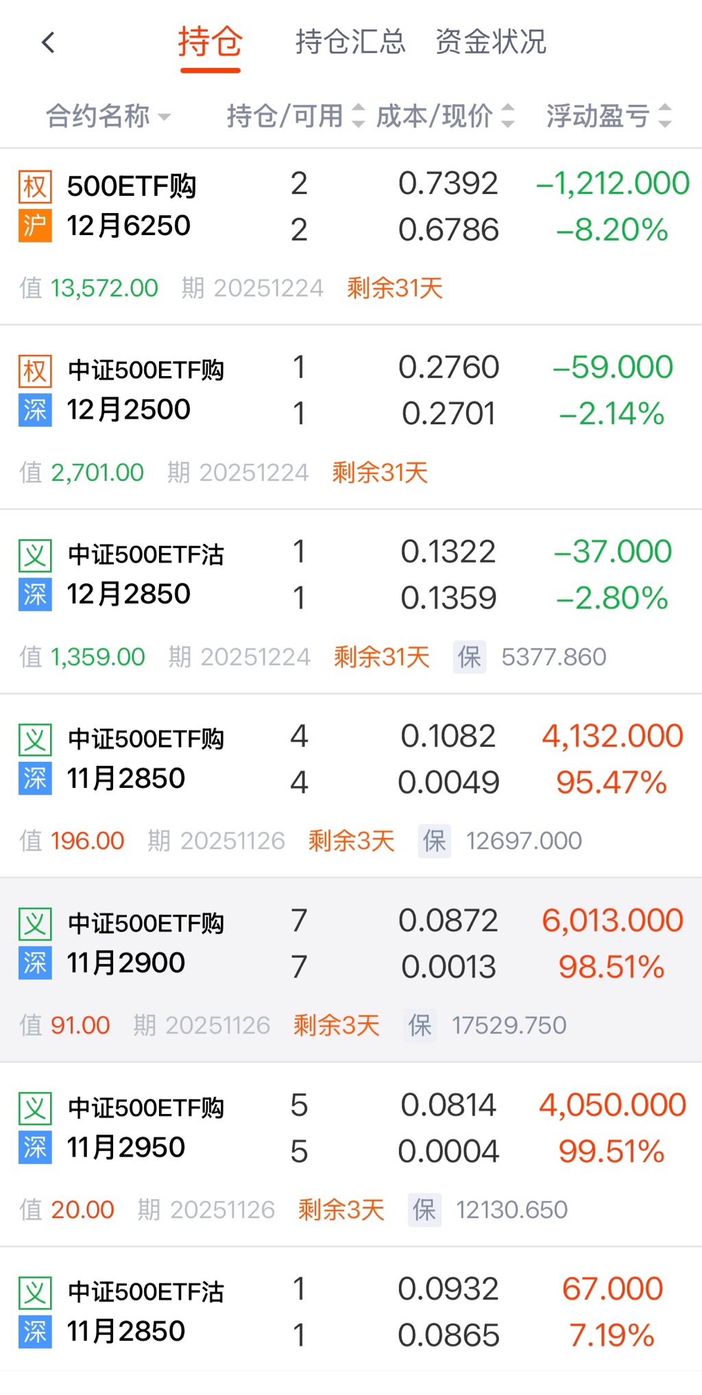 目前仓位有: