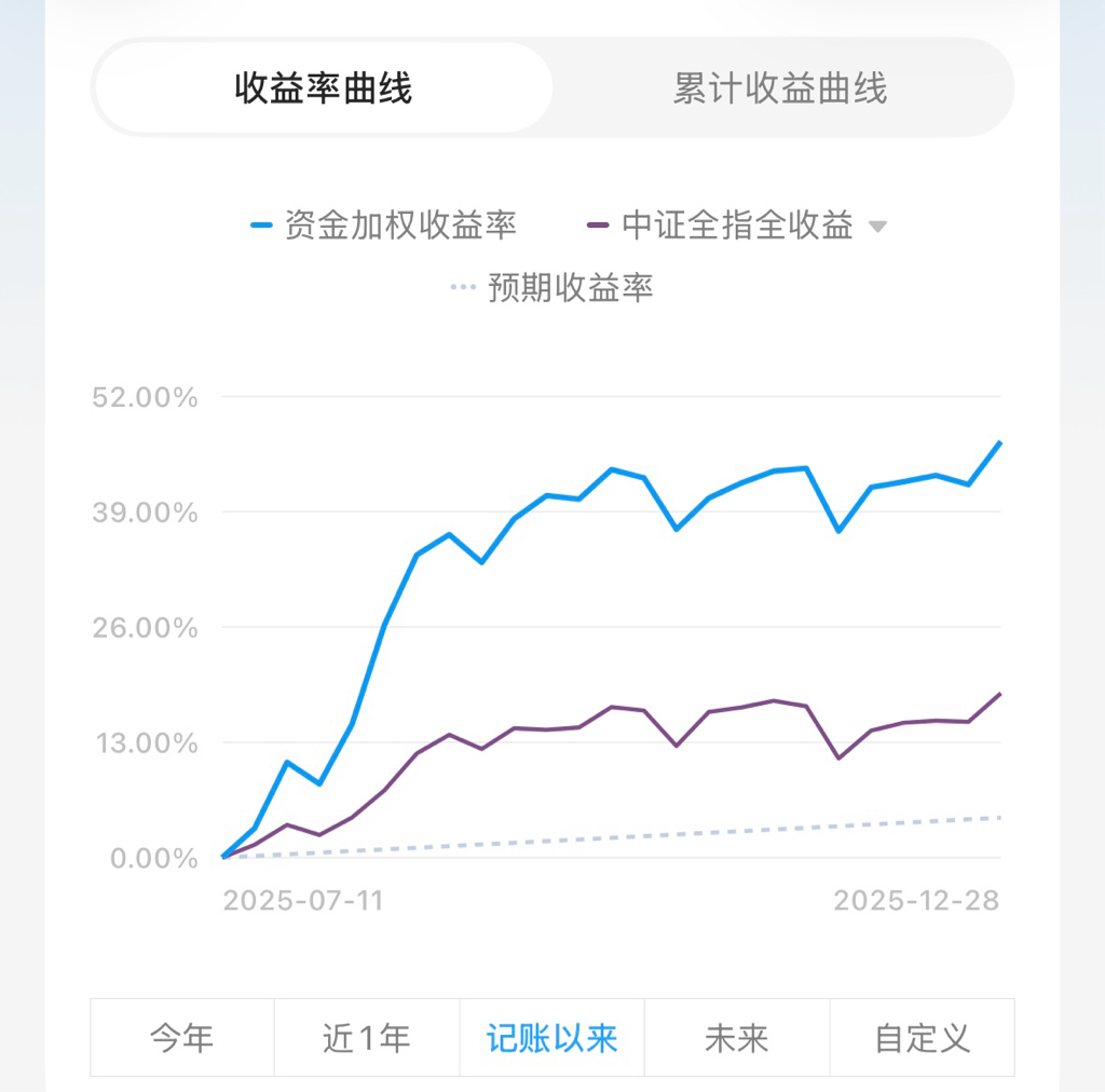 今年主要是 7 月开始实盘策略,累计收益率 46.91%,同期中证 18.53%,期间策略经过数次升级,一开始主做买购,后来逐渐延伸到卖购、卖沽,总体操作还算得心应手,细节需要再打磨优化,争取明年更进一步,获得更多超额收益。