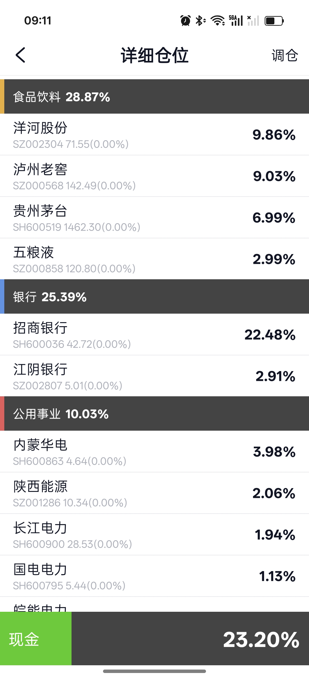年内41.1%。今日调仓:卖出云铝3w换成老窖。仓位不变。