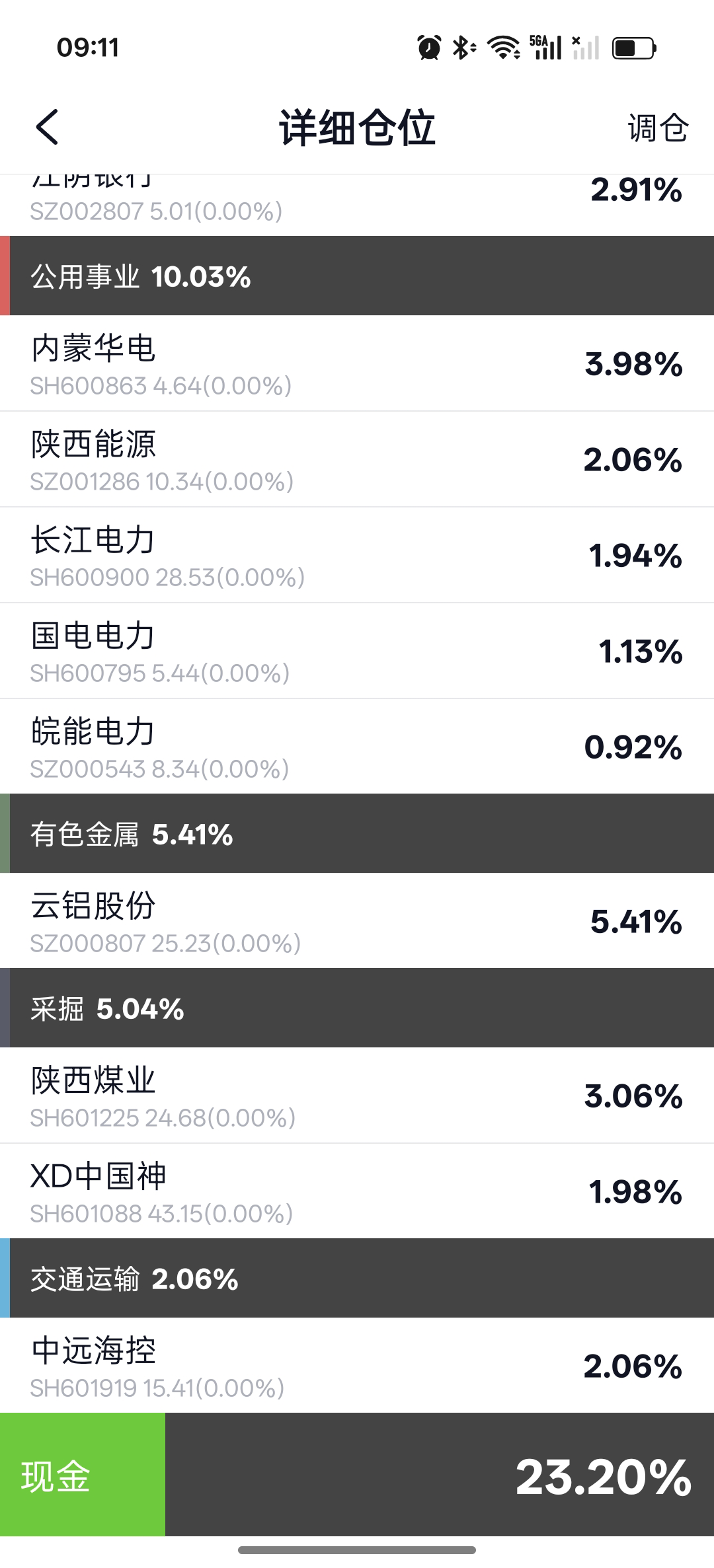 年内39.5%,跑赢17.5%,市值510w。今日调仓:稍微卖出云铝和陕煤共2w,换成中煤h。今日仓位不变。