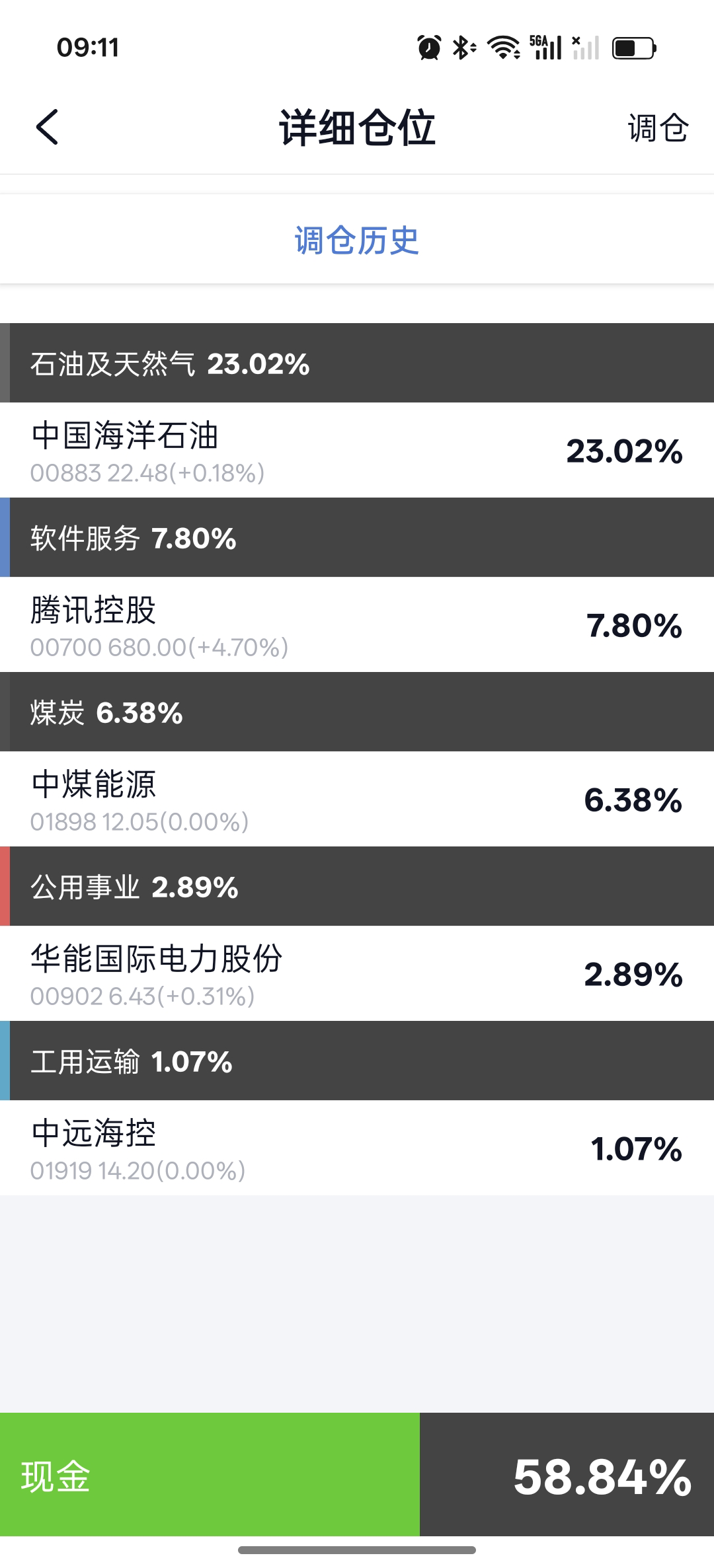 年内33.2%,市值512w。今日调仓:买入神火5w,大唐电力h股换了4w到中海油h。本日加仓5w。