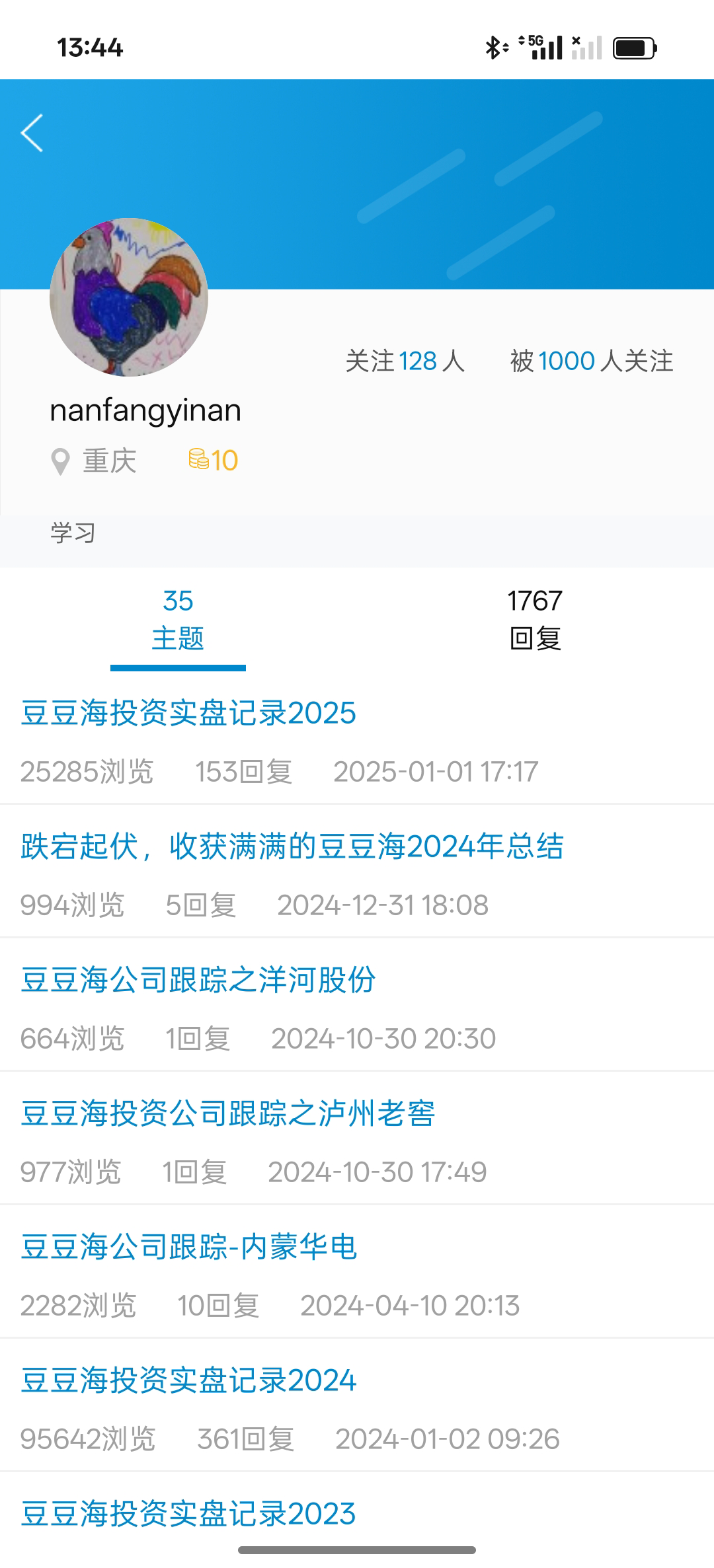 年内10.1%。继续小幅上涨。今天是IM持平,靠着煤炭电力等能源板块持仓带来净值微微上涨,不过终于回到10%+,很开心。进入6月,没有调过仓,本月会有一些分红到账了。到时候择机加白酒或其他。最拉的洋河已经连续几日拒绝新低了。看来这里底部区间差不多了。结束了重庆一周的行程。记录一下集思录被关注量竟然破千了。在这里每日记录所思所想,投资感悟,生活的只言片语。这几年体系比较稳定。一直在做IMIC的滚贴...内容再丰富下,是不是可以考虑做个公众号,不过需要更多的时间和精力