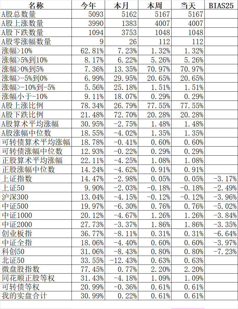 今天主仓没操作,因为小账号上涨,最终账户合计微涨0.01%,继续跑赢可转债等权指数,并以最小的微弱优势再次创出历史新高。