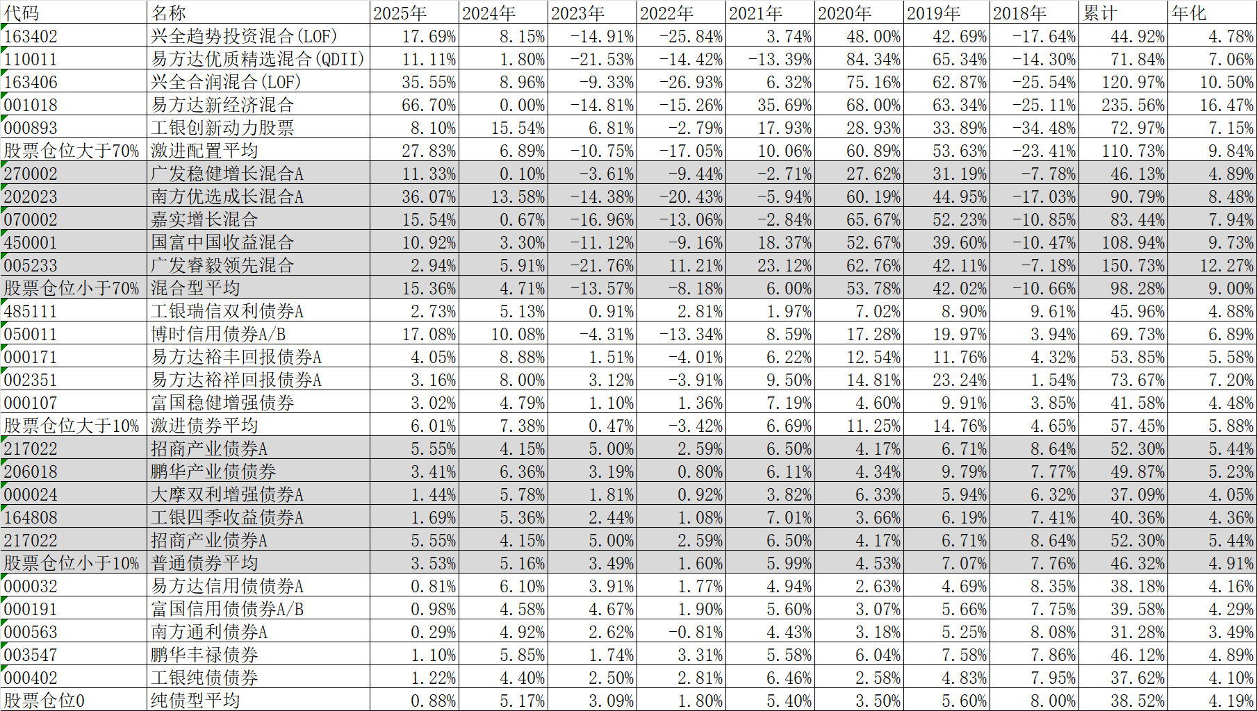 今年是股票的大年,5只激进配置基金今年获得了平均27.83%的高收益,但股票仓位为0的纯债型基金平均收益率只有0.80%,是最近8年里表现最差的。