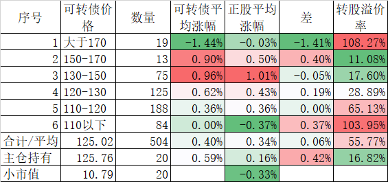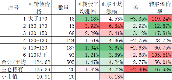 501只可转债平均上涨0.59%,对应正股平均上涨1.08%。我的主仓20只可转债平均上涨1.13%,对应正股平均上涨1.94%,账户合计实际上涨1.20%,再创历史新高!