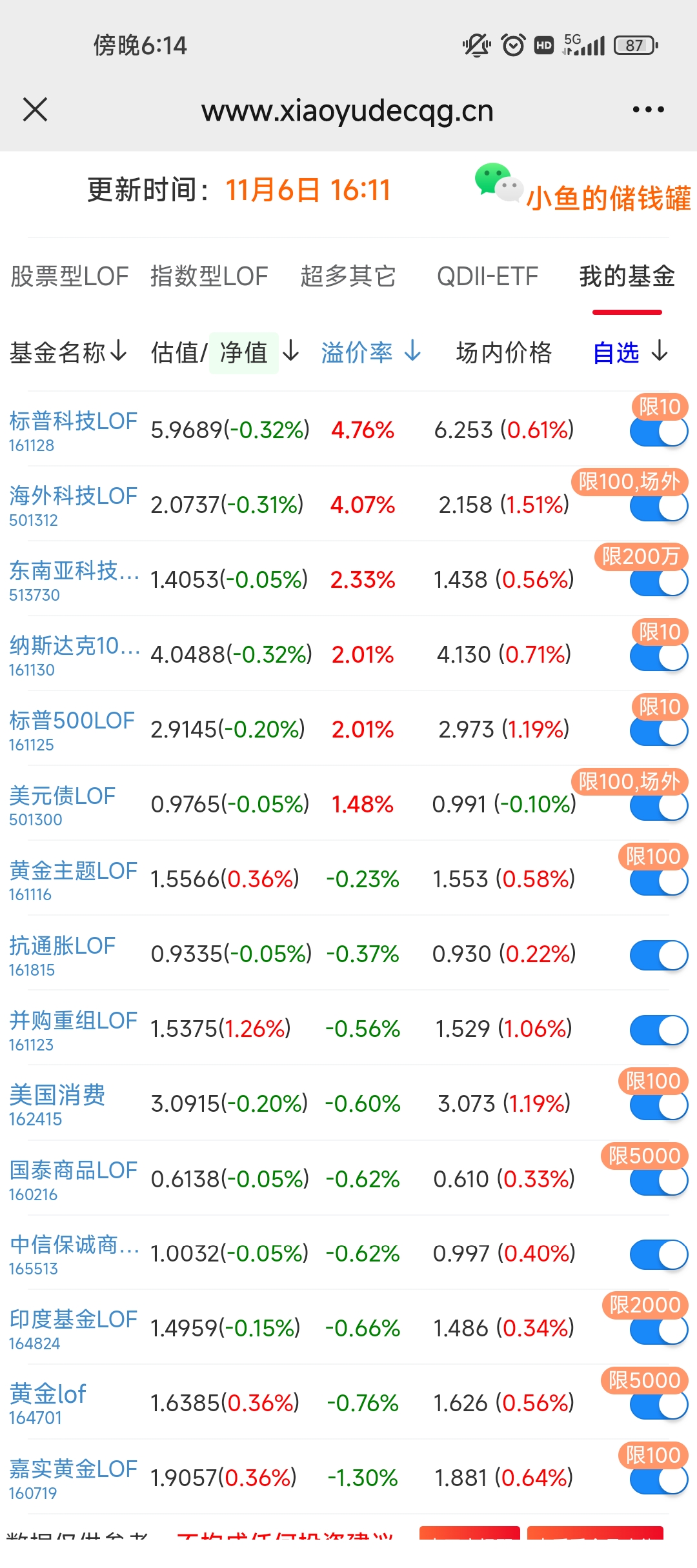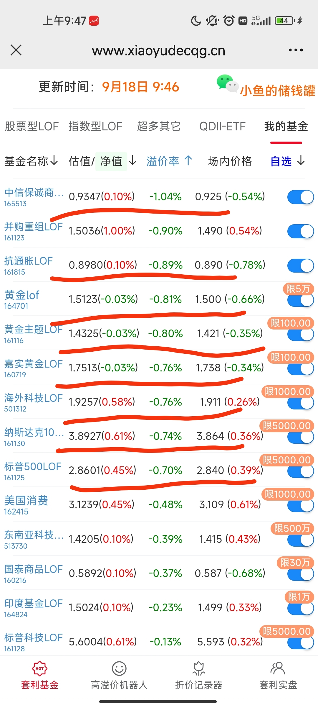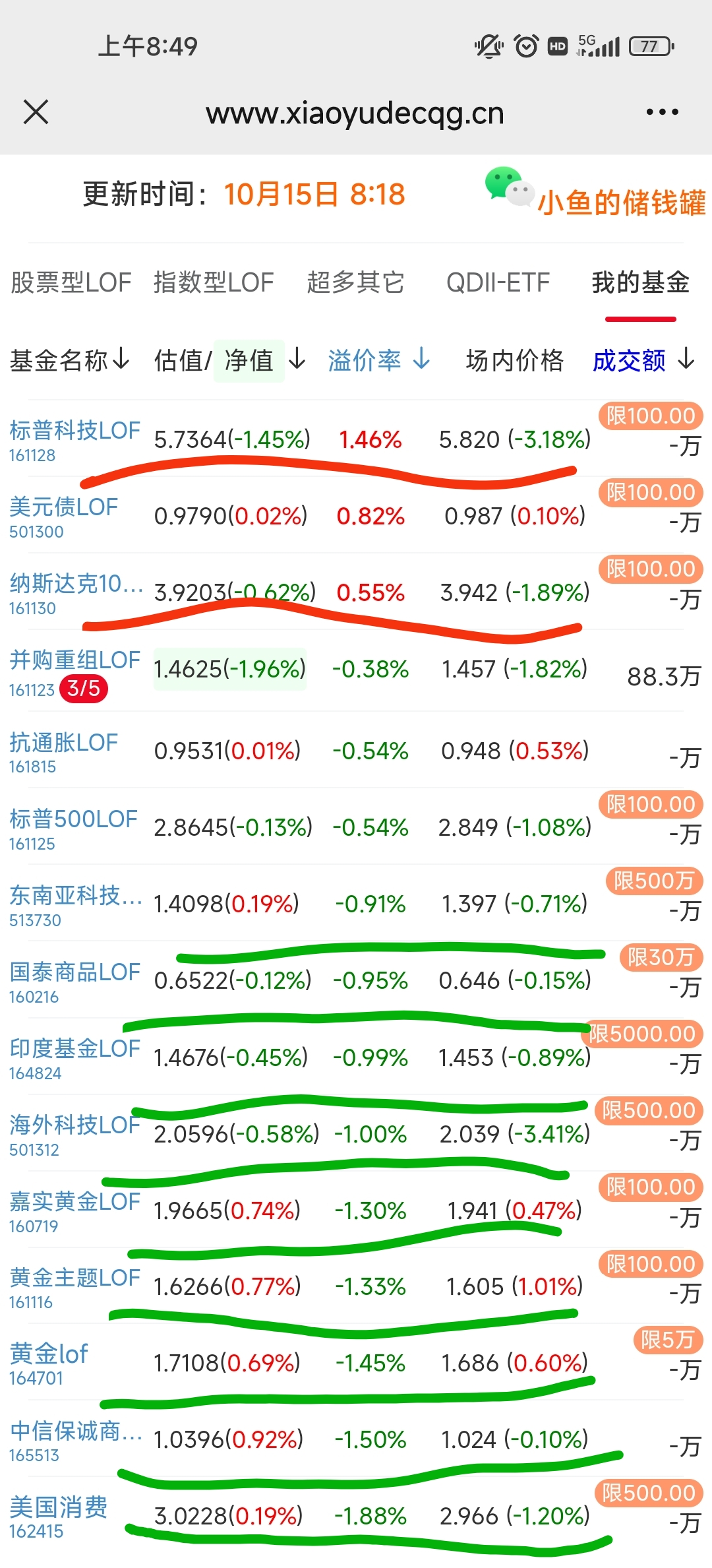 11月:11.4第一次在港股打新,辉立证券孖展没有额度了,只能打个免费签晶科电子玩玩啦(没中)。11.7美国大选结束,特朗普我们熟悉啊,接下来的四年投资计划就太简单了:allin美股。我给我老婆的建议是:大跌大买,小跌小买,不跌不买。四年不卖。11.8号:融资融券两融账户使用1股薅一把上市公司的礼品羊毛。11.11号我投降了,开始买中证2000ETF,后来换成低溢价可转债(10%仓位)来代替小市值仓位。11.15:带老婆开通银河证券融资融券以及去律所见证开户华侨银行香港卡。11.25开始我的成名之作:QDII溢价套利,这一天就发现了美国消费LOF基金/海外科技LOF基金,一开始只申购了几千块钱,11.27我申购了14万美国消费LOF,我老婆申购了11万美国消费LOF。后面这2个基金帮忙赚了一万多块钱,而其他几个限购1000的标普科技纳指LOF什么的也吃了一点小肉。
