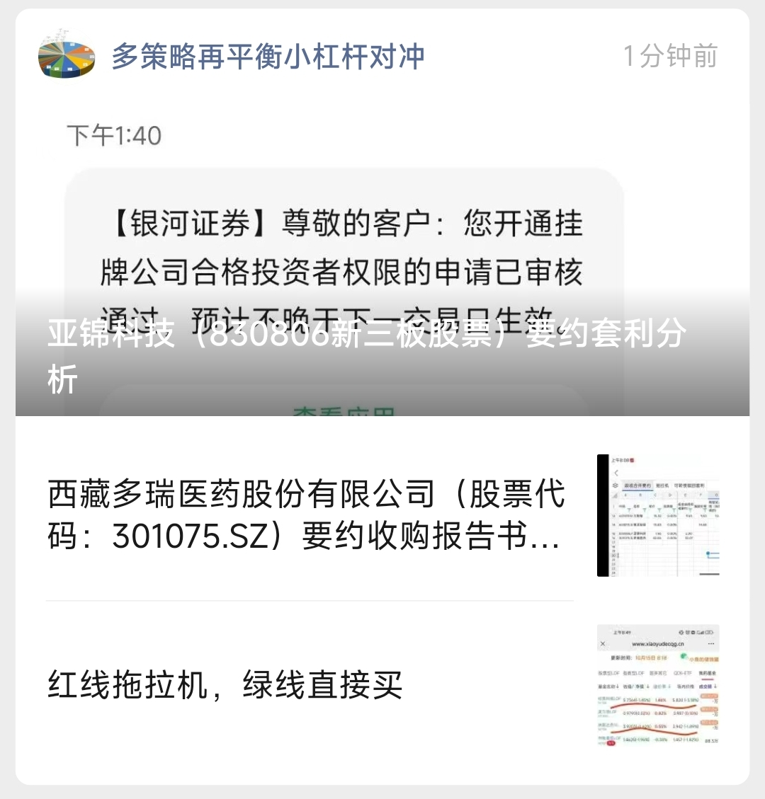 8月:8.1号发现之前把公众号删掉的太干净了,每天好无聊就又把注销老师的公众号关注回来了,其实他早期的文章和思想讲的已经很明白了,现在公众号的内容确实有点划水了。8.6感言:我还买了做空波动率的svix,因为我相信,恐慌是暂时的,一切都会过去,在历史的眼光看都是小波澜,剧烈波动不是常态,低波才是。纳指会新高,印度会新高,比特币会新高。我昨天还思考了,杠杆ETF我要在这几天美股暴涨之后清仓,换成1年期的期权,磨损小,杠杆高。我现在趁着本金小,不断的拓展我的武器箱,把该犯的错误都趁本金小犯一遍。昨天我老婆心疼的纳指盈利大幅缩水。我,一个经历过2月份亏了一年IT程序员工资的人,现在看看这点波动,毫无感觉,完全可以作为过来人的角度宽慰昨天崩溃的人。书中自有黄金屋。读书使人明志。我先用杠杆ETF磨炼胆子,昨天手都是抖的,现在想来还心有余悸,信仰是有的,但是手抖。我怕我辛辛苦苦半年薅的港美股券商开户赚的几千块钱都被我昨天一天亏完了。我昨天忽然想起来群友疾风劲草只薅羊毛不玩股票了,当时后悔莫及。但是事已至此,我只能硬着头皮加仓买杠杆ETF,其实没赚多少钱,昨天转的1.6万港币,说是赚了10%,其实只有200美元。但是我实在是不忍心开盘-350美元,我还是要忍住恐惧去追逐信仰,去实践,去验证想法思路。趁钱少,犯错成本低。努力拓展思维思路。我昨天撤出小市值之后,今天居然没有想法再买回来了,真好。我忽然想起来书上说的:如果你不知道该不该割肉,那就思考一下,如果你本来就不持有它,你想不想买它?我今天买回来的是高股息,买了唐山港,粤高速,中海油,长江电力,苏租转债,洪城转债,说明我对大a有一个信仰:国家队把人把钱往这方面驱赶,我要和国家队一个战壕。我再也不要买垃圾了,什么一天1个2个3个涨停票,有个屁用,不照样没回本。垃圾就是垃圾,炒小炒新的时代过去了。昨天把红利低波100ETF也清仓了,同样今天没有兴趣买回来它,真好,知道自己并不是真的想持有它。如果没有昨天的冲动清仓,我想我还会继续每天对这些【非真爱】来回浪费时间浪费精力浪费手续费还不挣钱还亏钱的无意义操作和担忧上。2024下半年会很难,9月份美国降息后纳指最少会回调9个月,a股只会跌更多。清仓了a股,白天就清净了,拿着这些高股息,可以安心上班工作生活。9月份把美元账户里的股票全清仓,换成tmf期权,也不需要操作,最少可以半年不需要盯盘,不知道我能不能执行我的这个简单策略,如果能达到一半的执行程度我就谢天谢地啦。因为我明知道正确的路在哪里确还是忍不住去分散策略。8.9号感言:美股账户新高。8.11回复网友:a股只持有高股息票了,或许等a股牛市再回来是一个不错的选择。8.12笔记:成长,才是买入的理由,估值最多只能当做筛选条件。8.13第三次回到水面上。8.15:中国工商银行换10万港币,工商银行手机APP直接【境外汇款】汇港币到恒生香港银行卡。8.15:把雪球上关注的所有人都删了,把早就不更新的雪球组合也关停了。我天天泡着群里show收益图,虽然都是真实的,但是确实很惹人厌,我准备去雪球show图去显摆去嘚瑟,那里的网友不会惯着我。我可以尽情的发泄我的情绪而不打扰人。8.16我退出了我一手建立的粉丝群:一年多前,我在几个集思录网友的建议下搞了一个讨论【多策略再平衡】的群,我无数次在群里说我从群友身上学到了很多东西。现在我越来越发现这个群快成了我一个人的独角戏做秀场装逼画面。我无数次说过我不喜欢戴面具,而且喜欢报喜不报忧,和魏斌杰的口头禅【亏麻了】高情商不一样,我亏就是亏赚就是赚,恰好a股这段时间萎靡不振,我太能显摆了,我感受到了众怒就在我头上悬着,我已经感受到了全群的万马齐喑,只不过不好意思骂我,昨天我做出了一个冲动的决定,我就像上周一样脑子一热清仓a股一样,给自己留个面子主动退群。昨天我把雪球上所以关注的大V都取消关注了,打算在这里显摆。8.16中午我搜索了一下微信公众号怎么创建,没想到几分钟就建好了多策略再平衡小杠杆对冲,还写了第一篇帖子,真方便,我觉得这是一个记录自己所思所想的好地方,准备作为记录自己投资和生活的舞台,不需要打扰到别人的清净。8.19:挪钱到国金证券,准备qmt之旅,2023年年底开通了国金证券和qmt权限(还是之前说的原因,华西证券不允许PC和手机端同时运行qmt),当时国金证券说半年之后才能给股票调整佣金,所以就只开了qmt权限就放着到现在了,正好我上周五把华西证券的钱清仓了。8.18:我今天退了99%的投资理财群,删除了99%因投资认识的微信好友,累了,沟通是相互的,我不想当那个满嘴跑火车的劝人吃饭的老婆婆。8.19清仓所有港股券商(因为他们的每笔交易都收取平台费管理费,交易成本特别高),换成美元,一并汇款到必贝证券(后来证明从此美股交易的好运停止了,必贝证券就一直没有回本)。8.24第一次使用券商VIP通道,重仓出击要约套利宝鹰股份,后来证明亏钱了,ε=(´ο`*)))唉。8.24美股新高!A股新高!