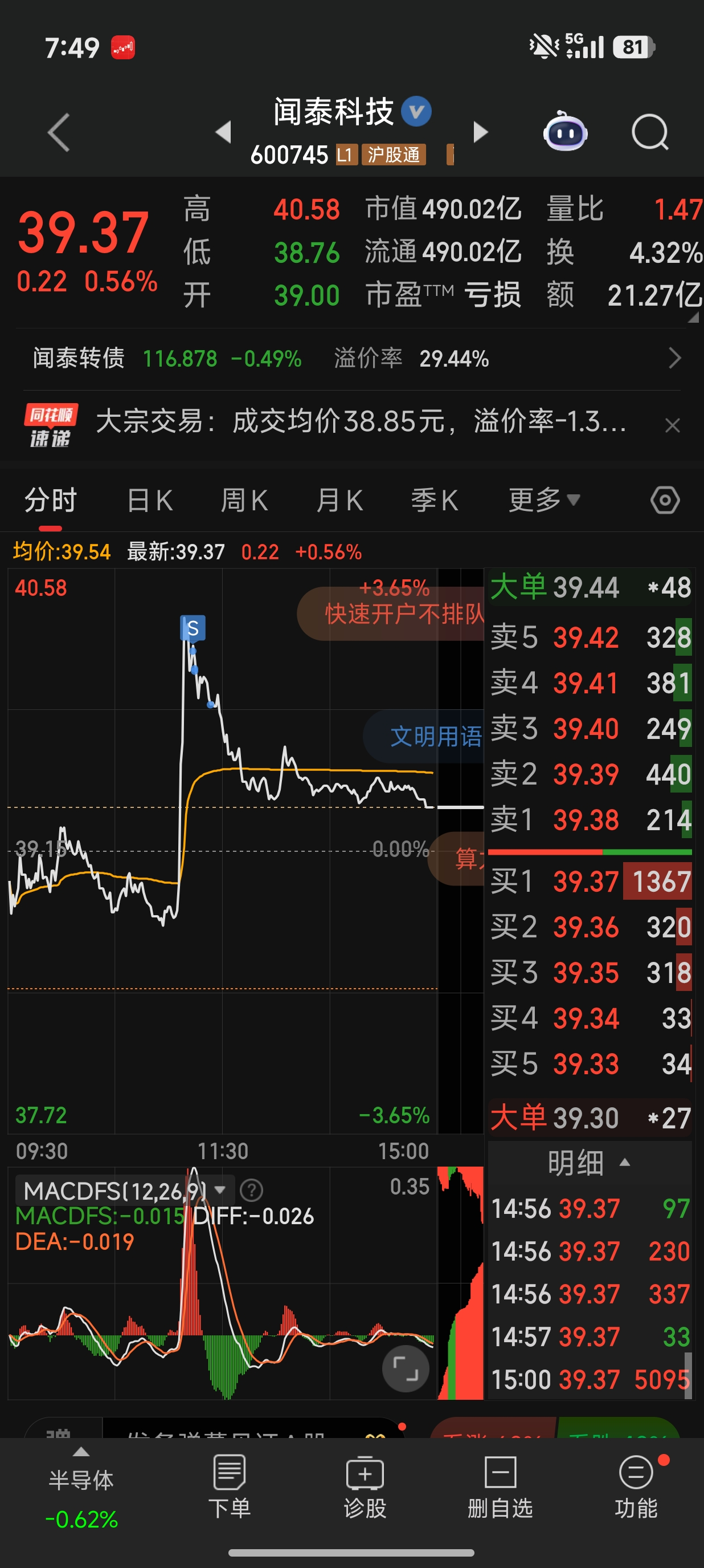 今天收获满满:1.买回神马股份2.买回超达转债3.优彩资源清仓,换成优彩转债,并全部转股。4.继续重仓镇洋转债。5.清仓三角转债,留5000块钱看戏6.继续加仓闻泰转债