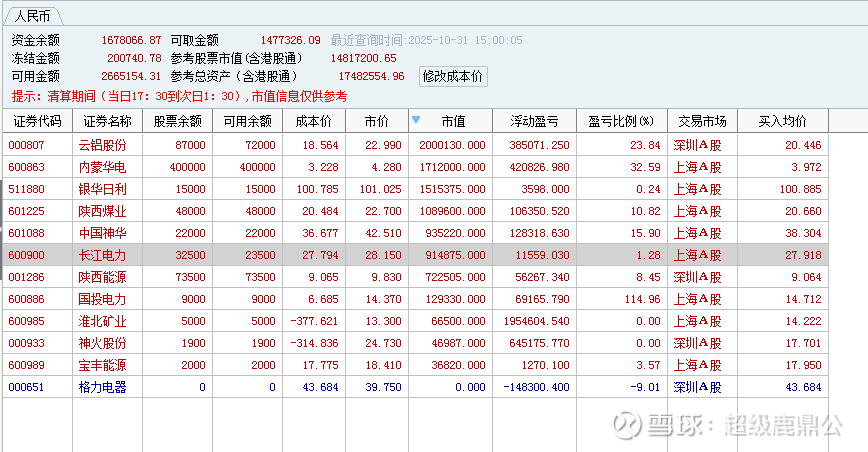 再给你看下 9 月到 10 月底的仓位变动,剔除 T 的,整个 10 月,公公大的仓位变动就是1. 几乎最低点清仓了格力2.神火换到云铝3.减仓了中煤和神华4.加了点新城其他持仓基本不动,他那点 T 的量,对他的净值影响很小的。这些持仓变动他都在微博里说,只不过他的微博夹杂了大量投资无关的,你自己没有深入跟踪,自然不知道。你都说自己是他铁粉了,持仓变动都不知道,就无脑黑,意义不大,投资是为了赚钱...