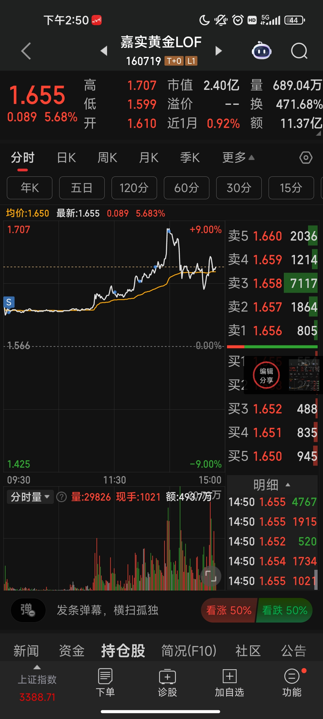 这一波黄金LOF赚大了,清仓场内LOF,然后银河证券APP场内申购1万人民币164701
