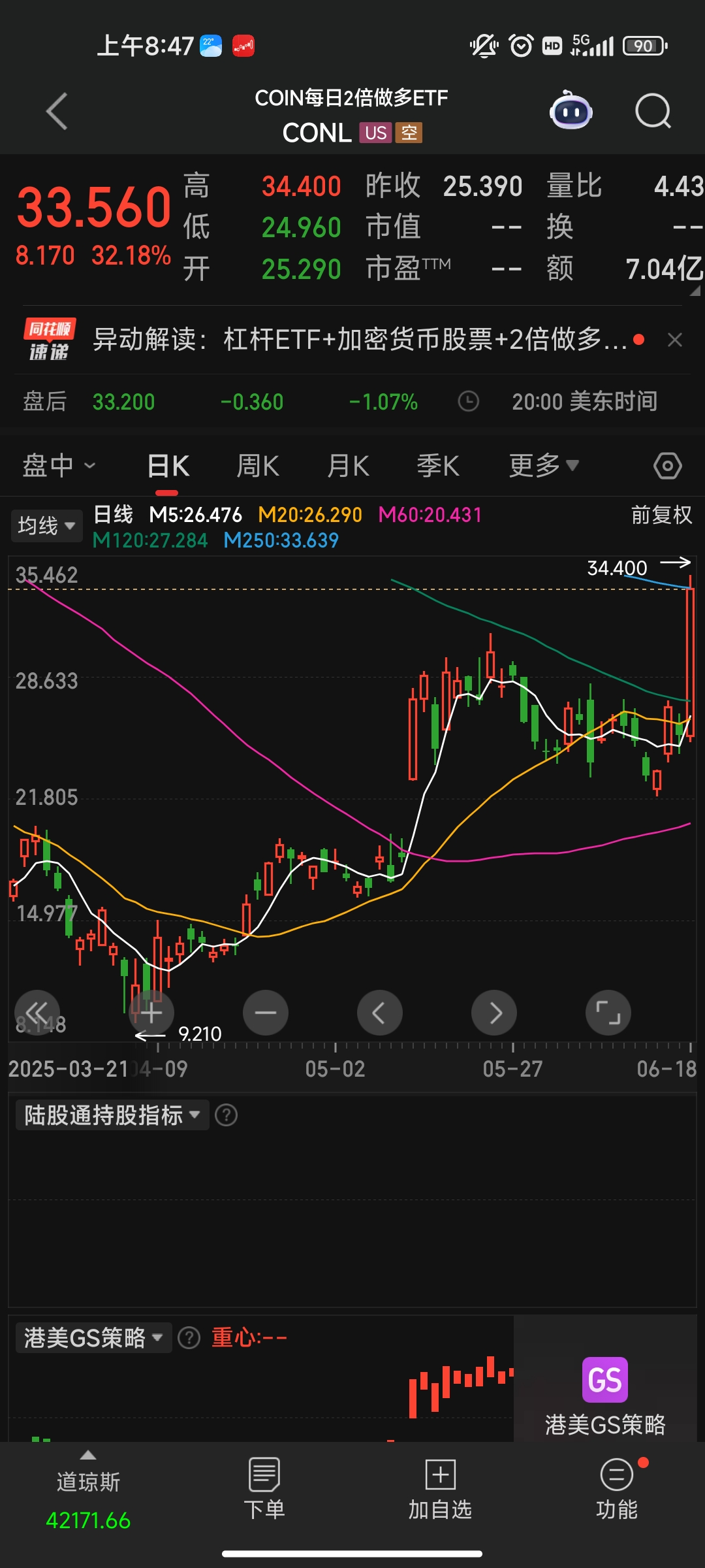 3月:开始有意识的超配【稳定价值】【高股息】的股票,这个决定奠定了我后面几个月超越我所有拜过的老师。这个月我开始拿出来3000块钱赌了一把末日轮,结果当天就输光了,后面5月份又入了3000元做买方又亏光了,不玩了,后面再也没充过钱。月初几天,我发现每天都是从赚1万变成赚1千。小市值最高亏50%,我疯狂把高股息的股票当做血包去加仓小市值策略,到3.11小市值策略还亏16%。月中开始慢慢把之前丢失的高股息/稳定价值/可转债/QDII买回来,回归多策略。上个月我花30万定期3个月存款得到办理恒生银行卡的机会,这个月香港卡办理下来了,第一次国际汇款啥都不懂,怕被外汇管理局问东问西,就使用了大家推荐的熊猫速汇汇了第一笔5万RMB,其实后来发现熊猫速汇最坑,他们把他们公司应该挣的钱都从换汇损失里拿到了。3月份渐入佳境,几乎每天都是红的,只不过涨的很少。5万港币到账后,通过崔文泰的链接开通了华盛通证券,我终于迈出了出海第一步,然后我就开始了在美股做t的赚钱时光,玩了很多在注销老师公众号里总结的一些杠杆ETF(如tqqq/tmf)/伯克希尔/coin/emxc/tlt/inda/trmd等等,做t很适合美股,不怕被套。