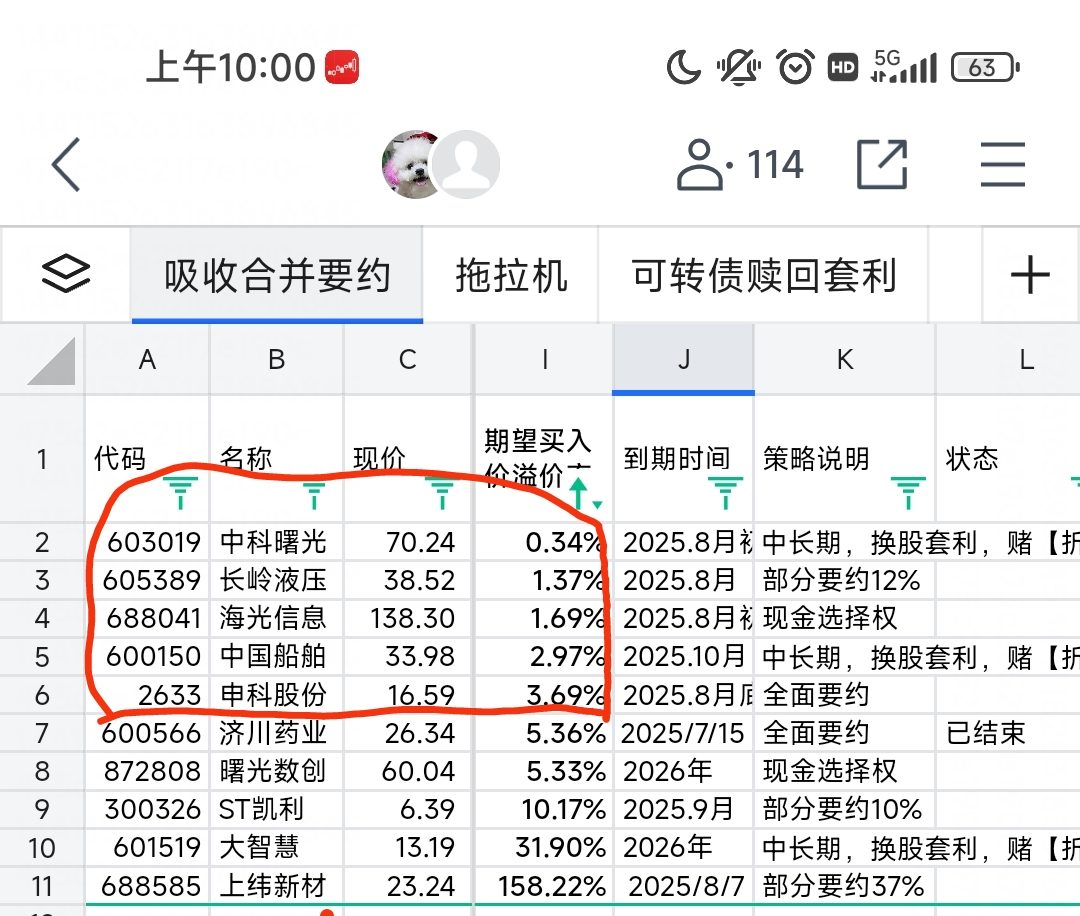 今年是套利股的大年,被朋友催了好久,昨天和今天终于搞出来一版【腾讯文档】wbb套利跟踪池 https://docs.qq.com/sheet/DTlR1bHdSVGJOZ2VP
