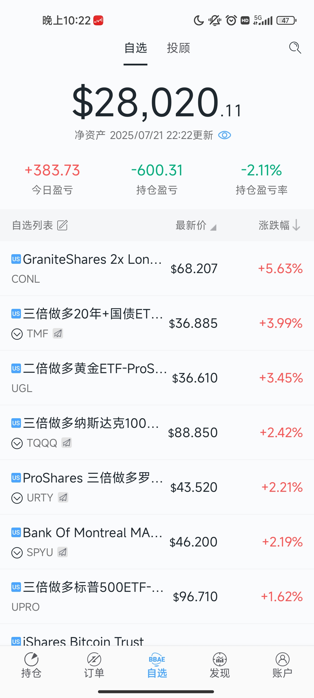 我还发现我美股账户上持有半年多的伯克希尔b股票还有tmf还有HDV都回本啦,难道美股也要变天啦?