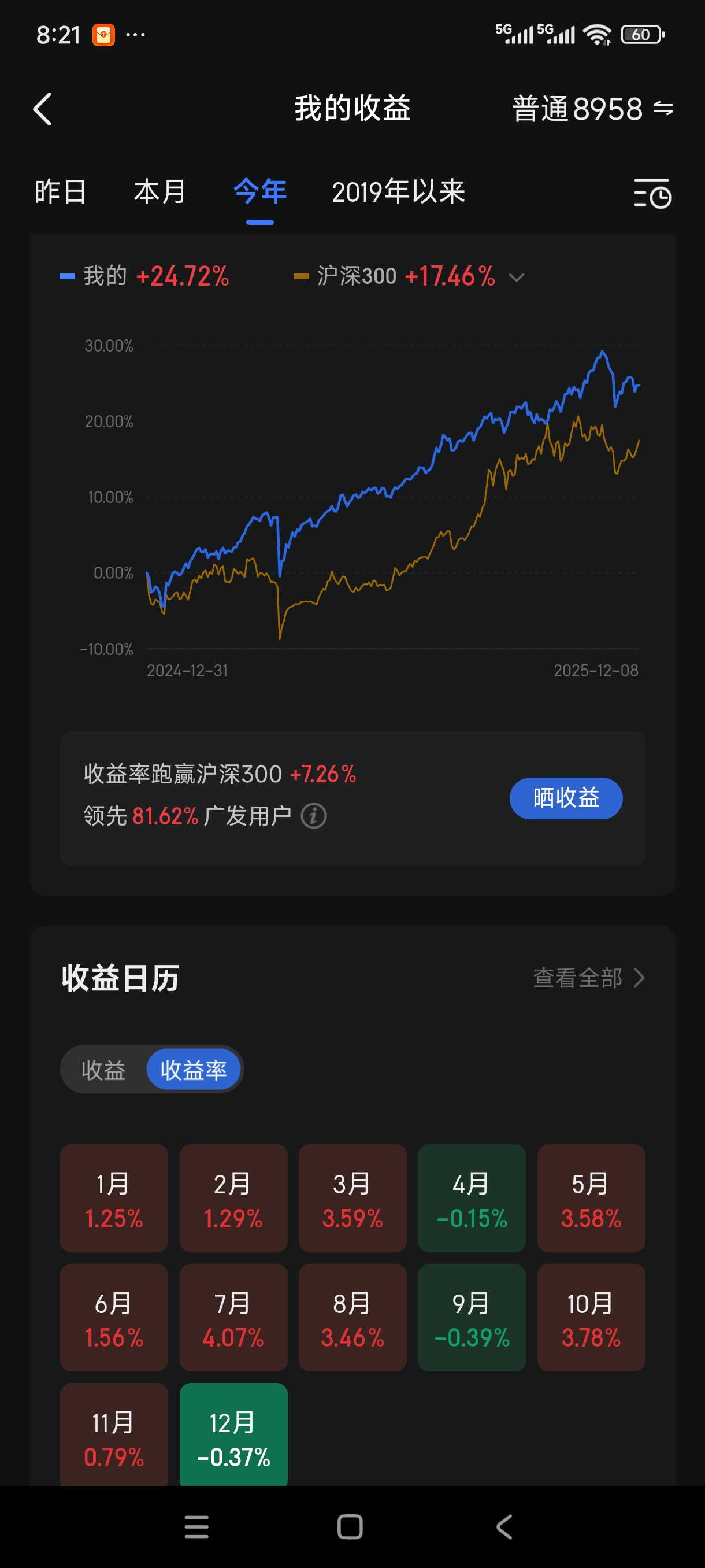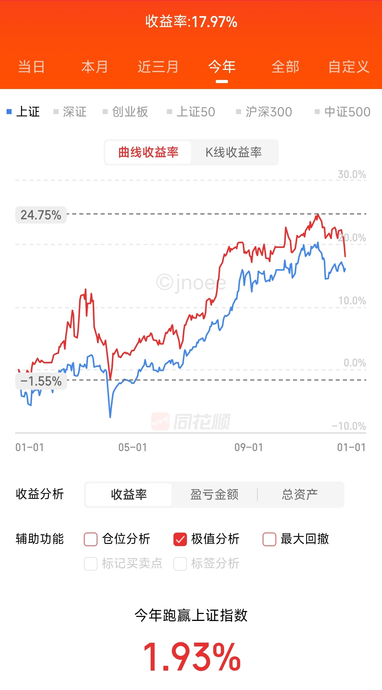 今年开贴目标定的 25%,目前 22%,还剩两月,还是有希望达成的。今年收益不太理想,主要是中间交了一波高价债的学费,除此以外没有什么特别的,还是符合自身风格的,水平还是中等,并没有提升也没有下降。