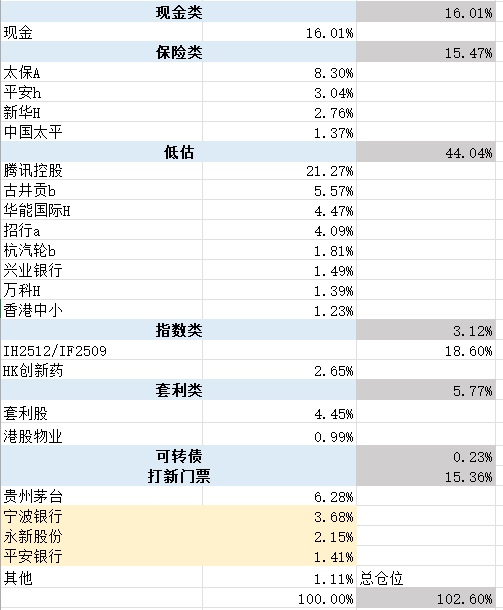 这周还加了些滞涨的股票,比如海康威视,伊利股份,兴业银行,宁波银行,平安银行,还有医疗器械ETF。
