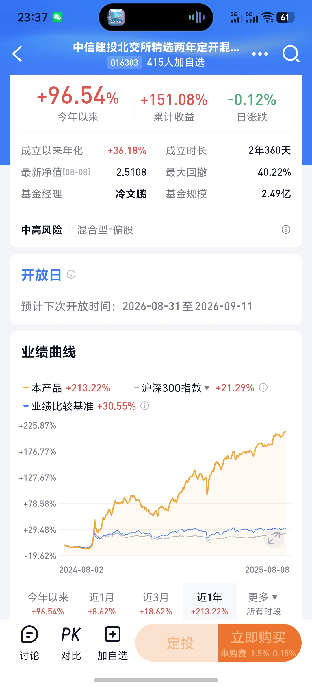 没想到的是北交所牛市之后,这只基金彻底开挂,直接亮瞎了我的钛合金狗眼。