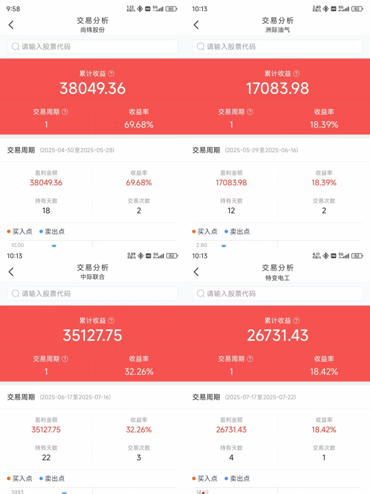 最后记录一下所有巨饼股吧,盈利基本都是以20万为基数计算的。