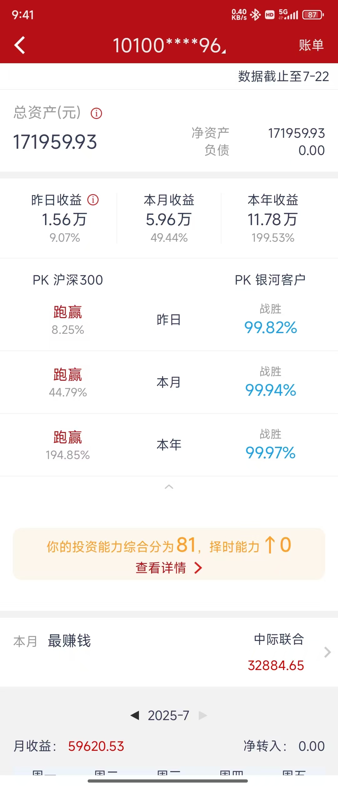 持有的较多现金还在寻找更好的策略中,买了一手IF2507目前小有盈利。